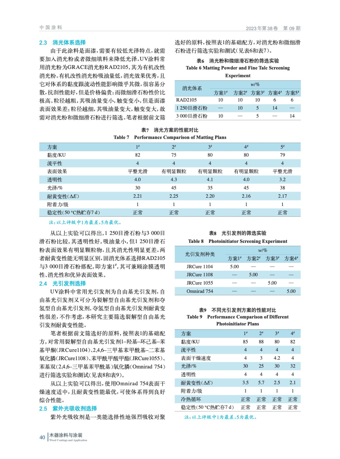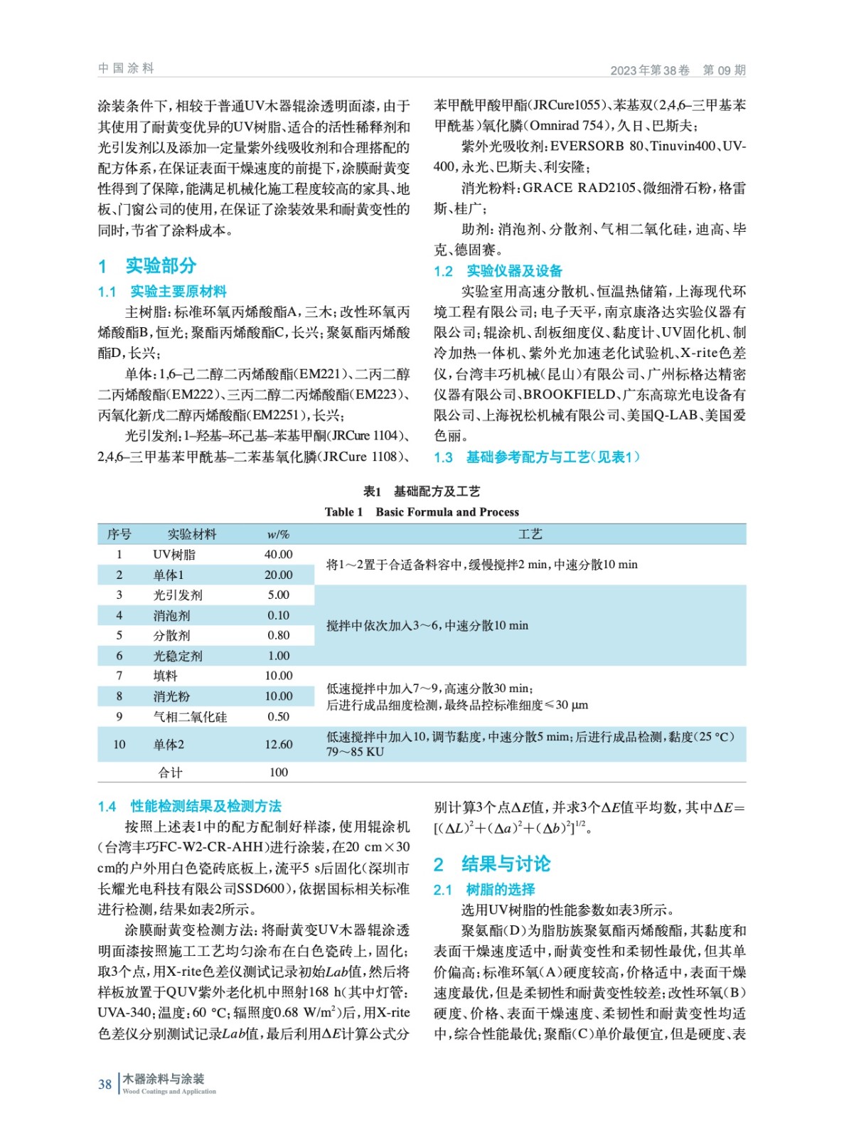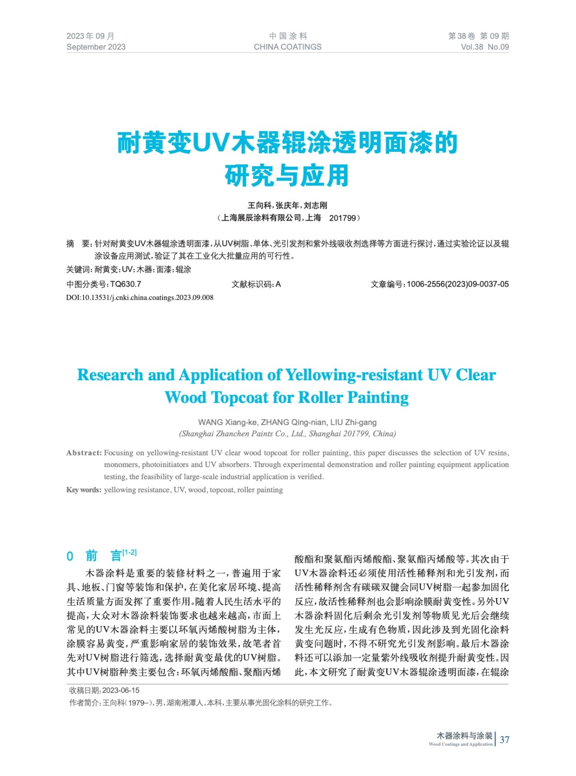 針對耐黃變UV木器輥涂透明面漆,從UV樹脂、單體、光引發(fā)劑和紫外線吸收劑選擇等方面進行探討,通過實驗論證以及輥涂設備應用測試,驗證了其在工業(yè)化大批量應用的可行性。