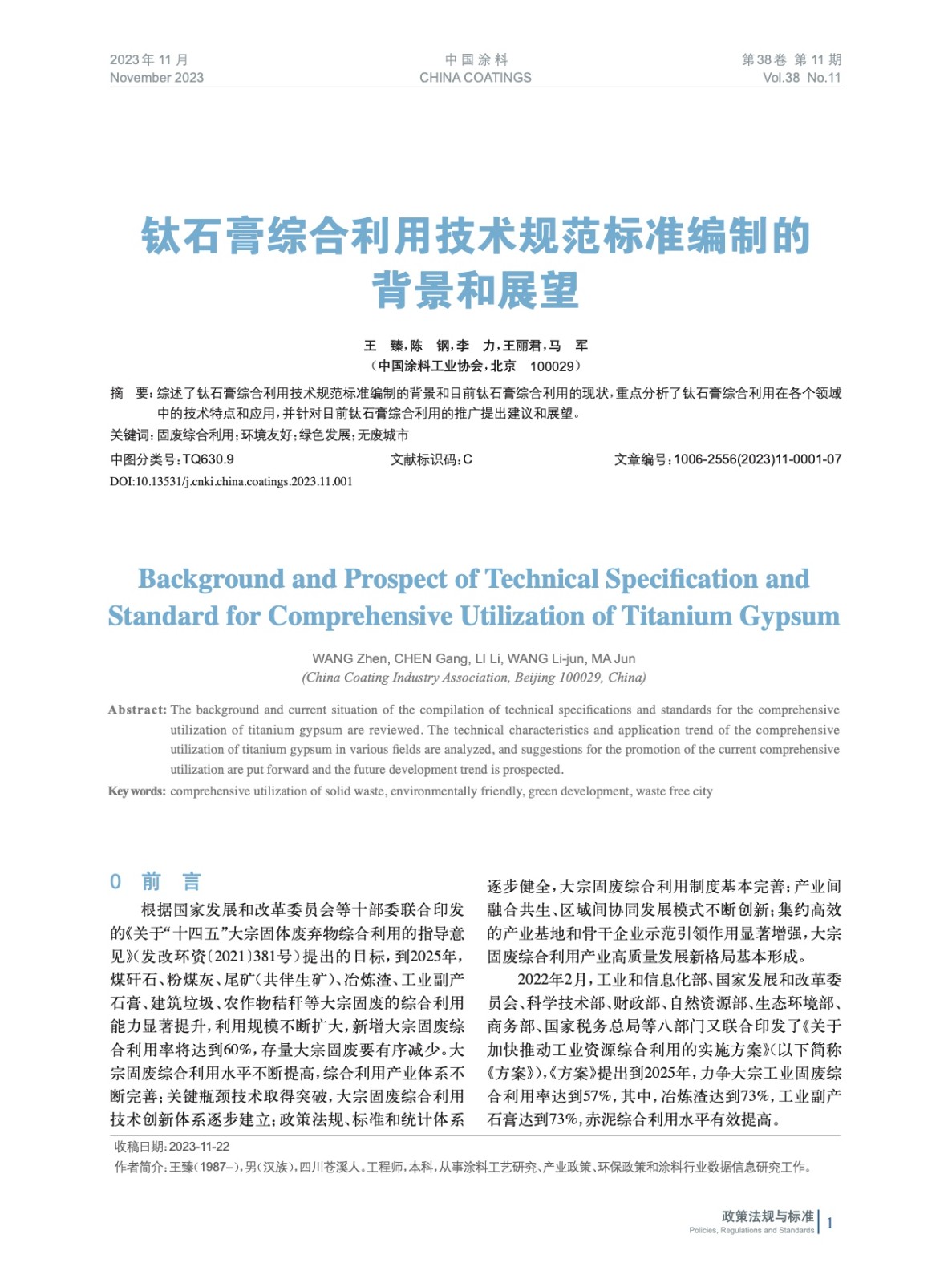 鈦石膏綜合利用技術規范標準編制的背景和展望
