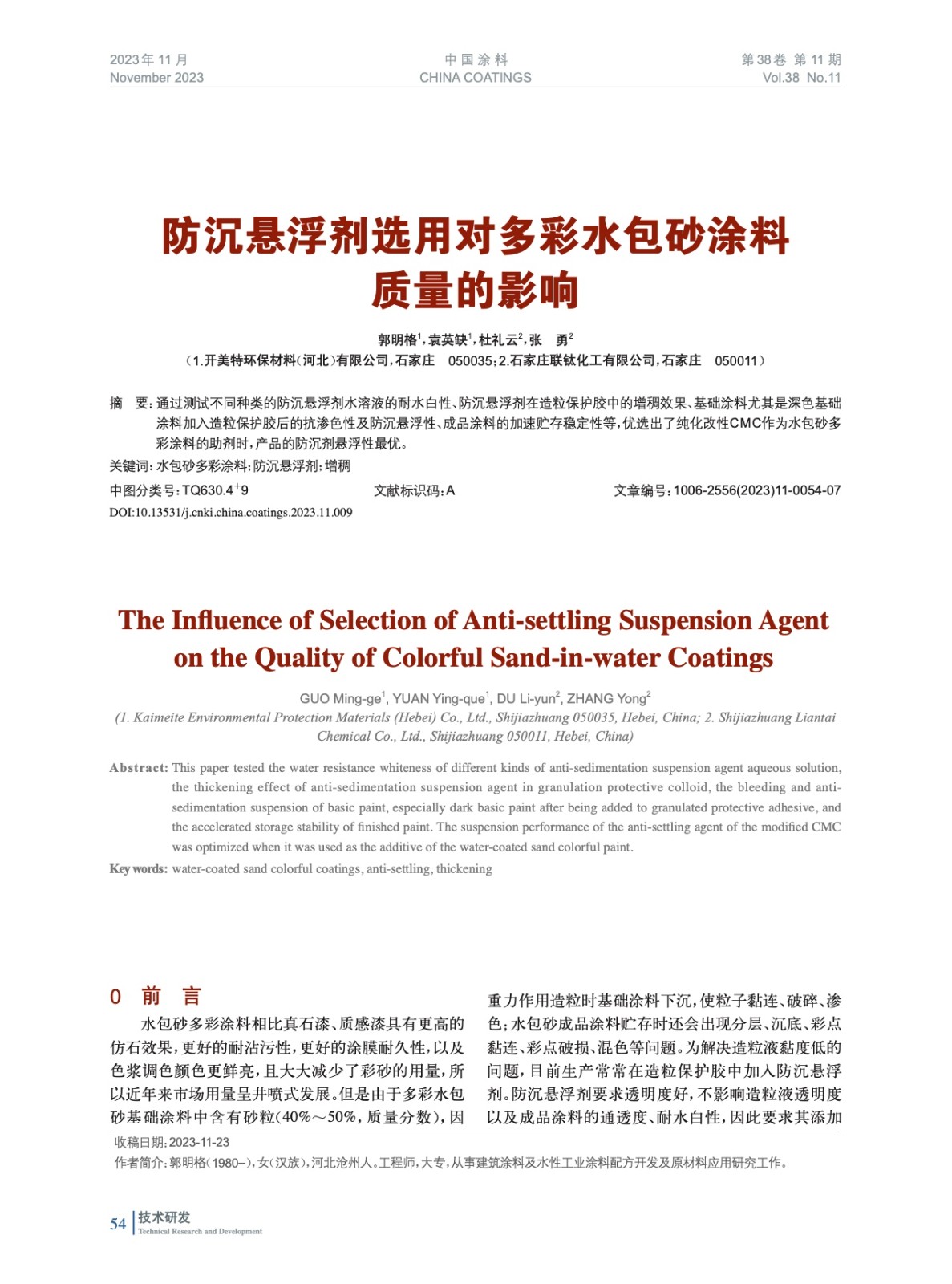 本文系作者@郭明格,袁英缺,杜禮云,張 勇 授權中國涂料網發表,并經中國涂料網編輯,未經允許不得轉載,如需轉載請聯系chinacoatingnet@vip.163.com