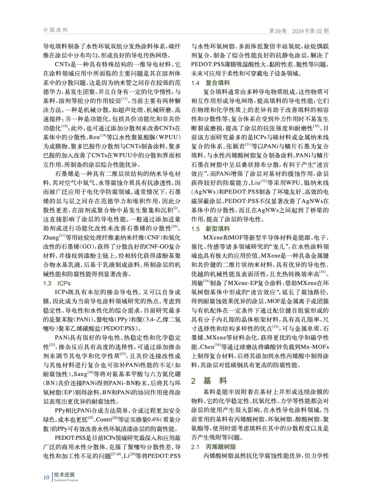 綜述了水性導電涂料填料(導電成分)和基料(成膜物)成分的類型和發展歷程、涂層導電機制及應用的最新研究進展,并對其未來發展方向進行了展望。