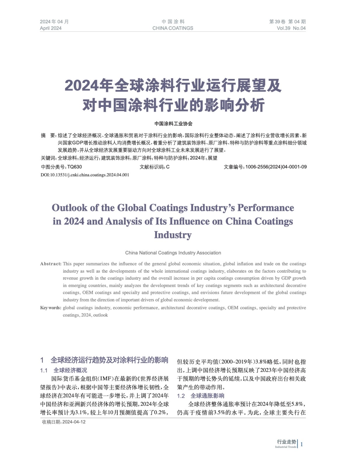 2024年全球涂料行業(yè)運(yùn)行展望及對(duì)中國(guó)涂料行業(yè)的影響分析
