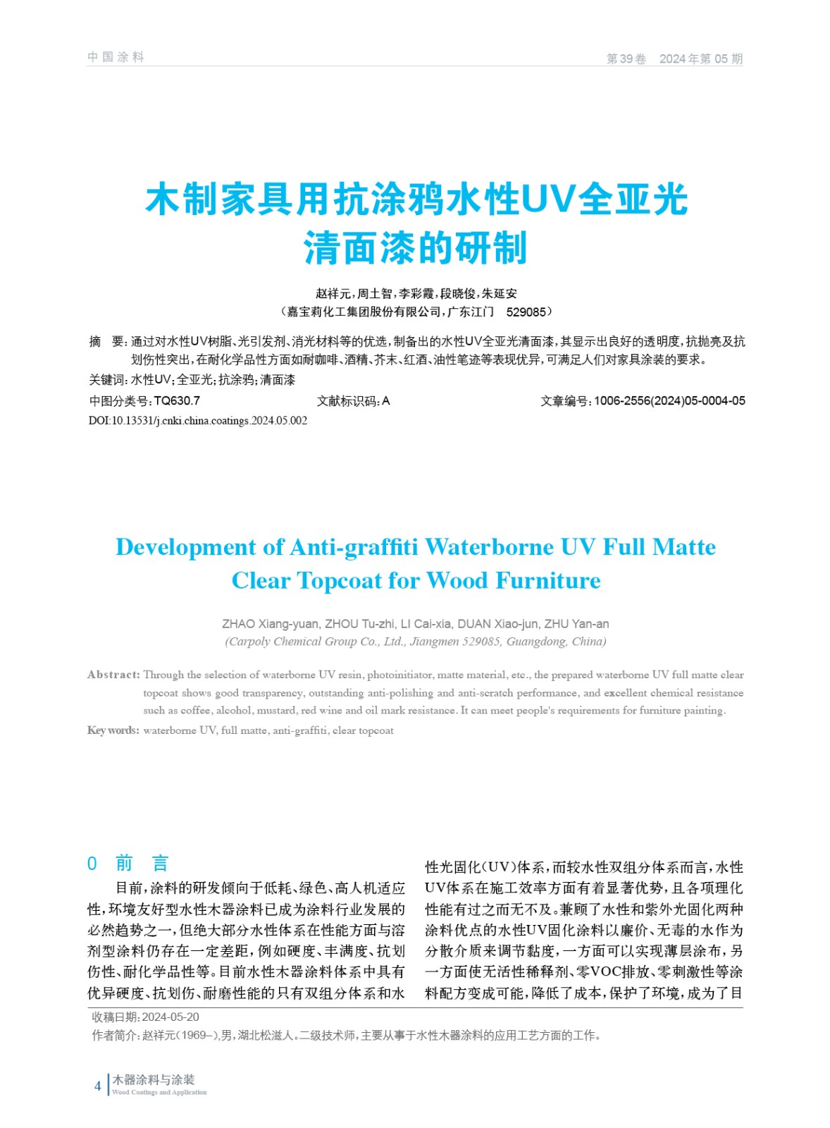 木制家具用抗涂鴉水性UV全亞光清面漆的研制