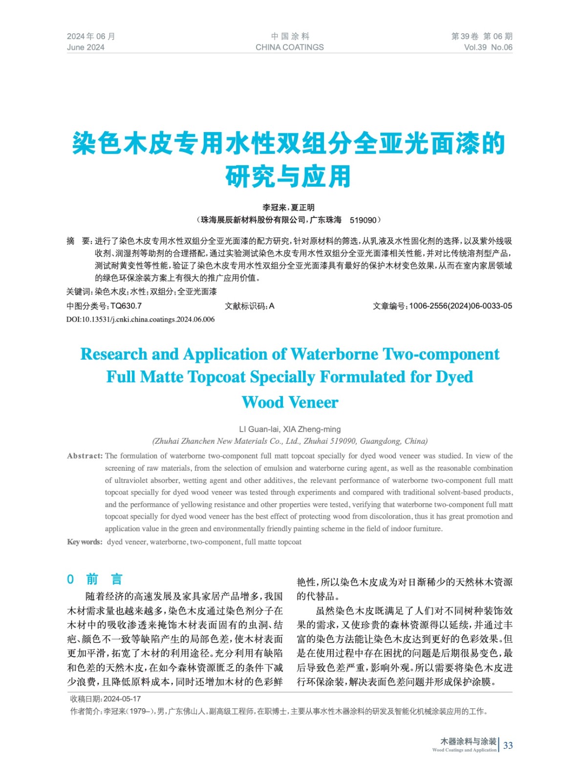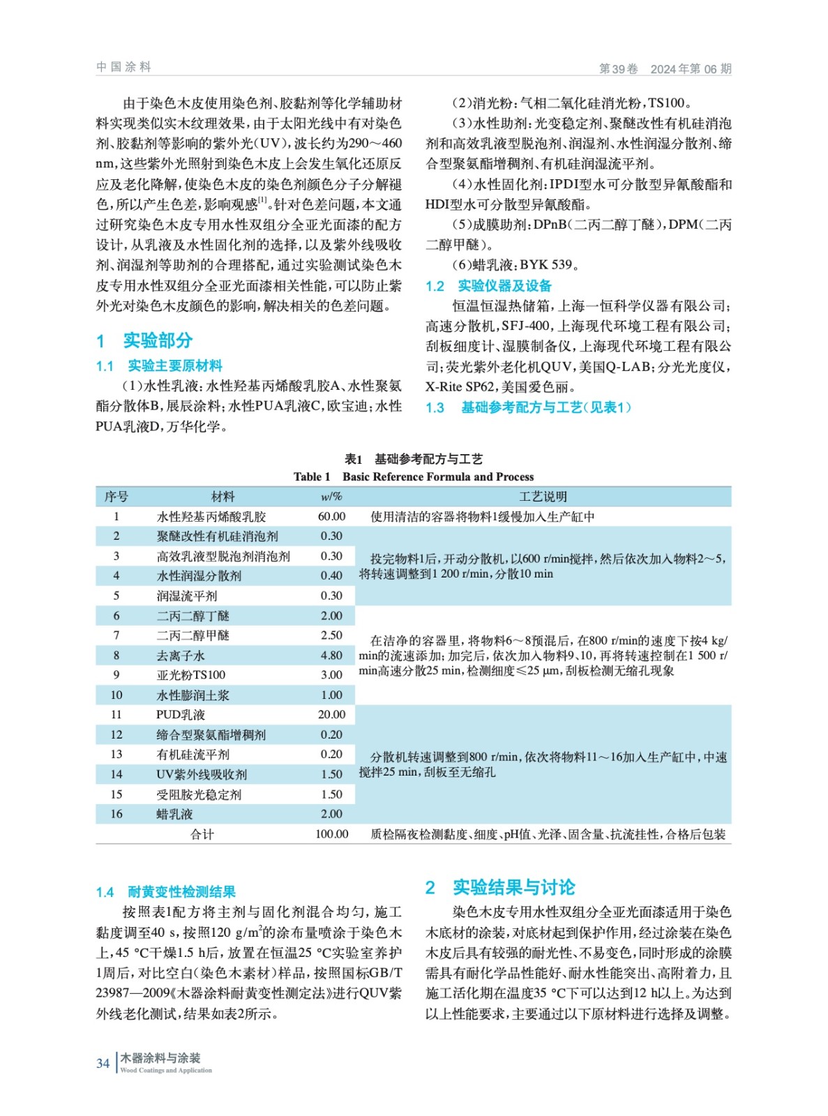 染色木皮專用水性雙組分全亞光面漆的研究與應(yīng)用