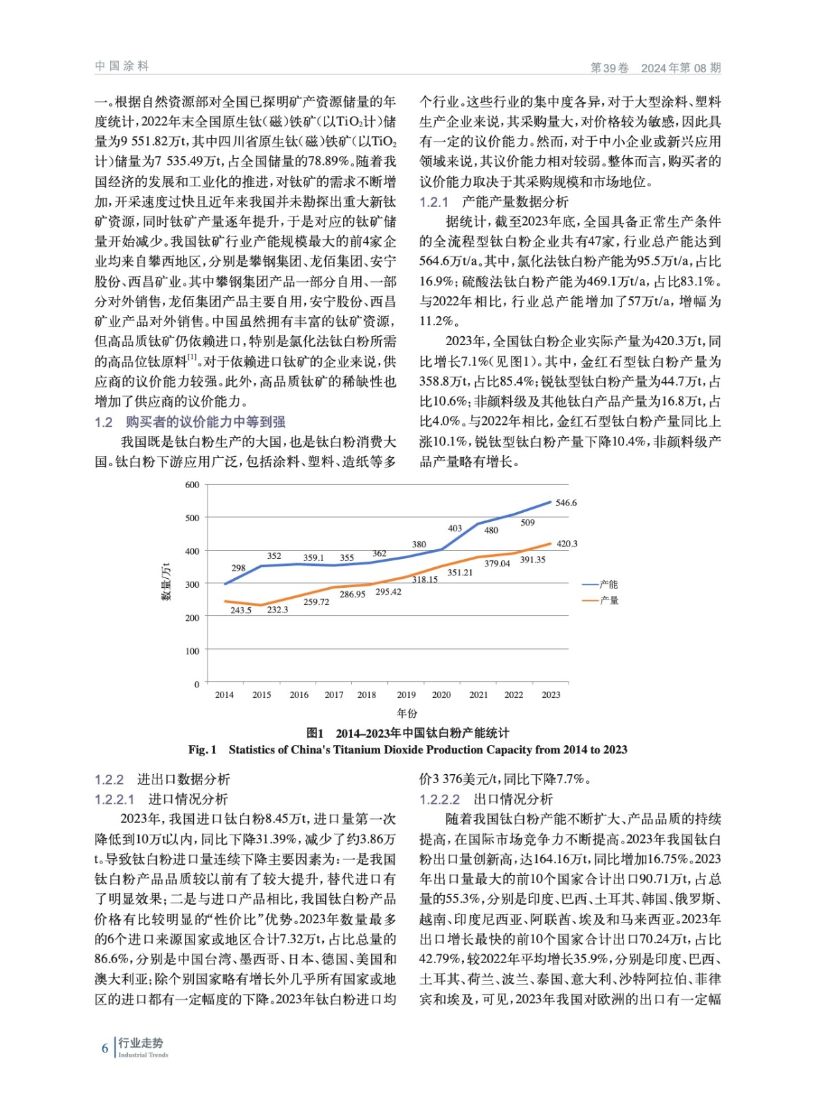 摘要:對2023年中國鈦白粉行業的經濟運行情況進行了詳細分析,涵蓋了生產、需求、競爭格局、政策環境以及技術發展等多個方面。通過對行業數據和市場趨勢的深入研究,揭示了當前鈦白粉行業面臨的挑戰與機遇,并提出了針對性的建議,以期促進行業的可持續健康發展。
