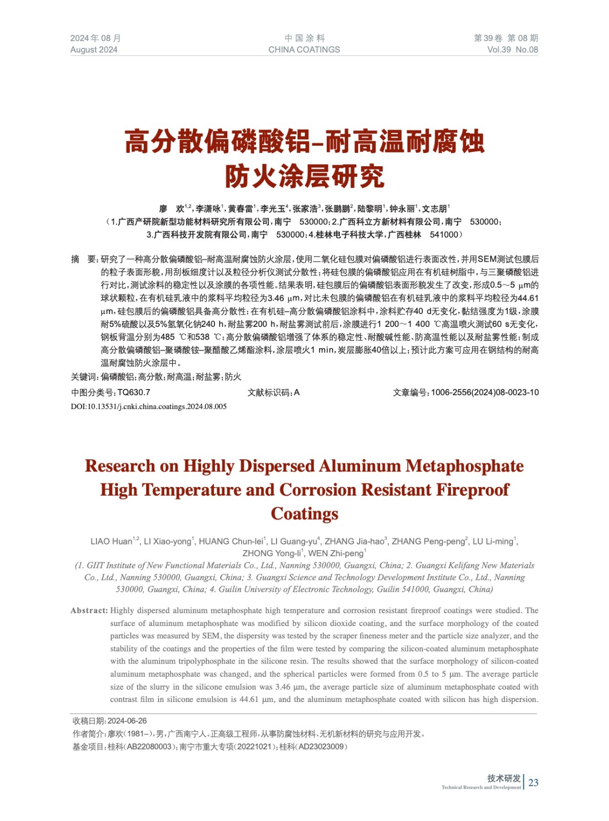 本文系作者@廖 歡,李瀟詠,黃春雷,李光玉,張家浩,張鵬鵬,陸黎明,鐘永麗,文志朋 授權中國涂料網發表,并經中國涂料網編輯,未經允許不得轉載,如需轉載請聯系chinacoatingnet@vip.163.com