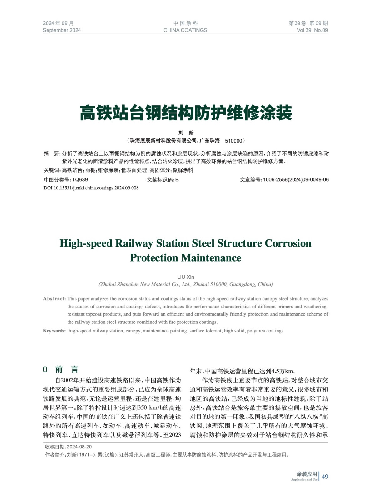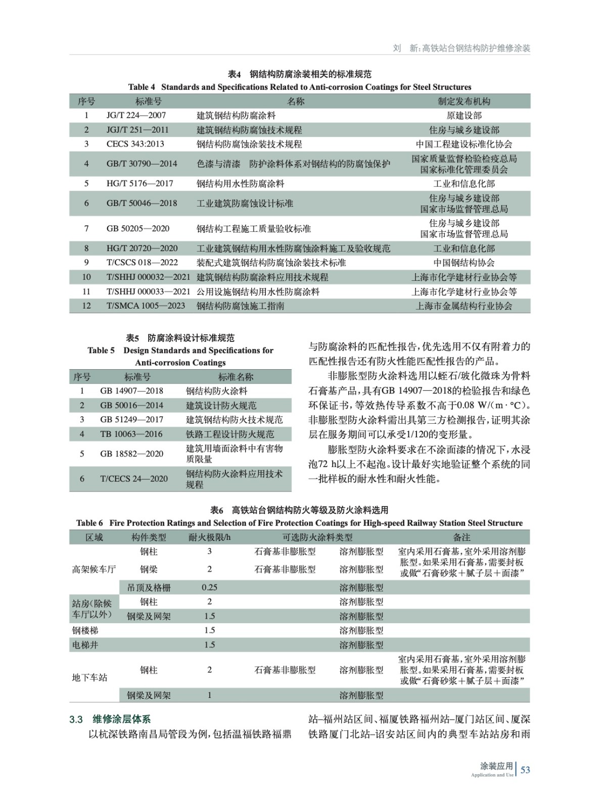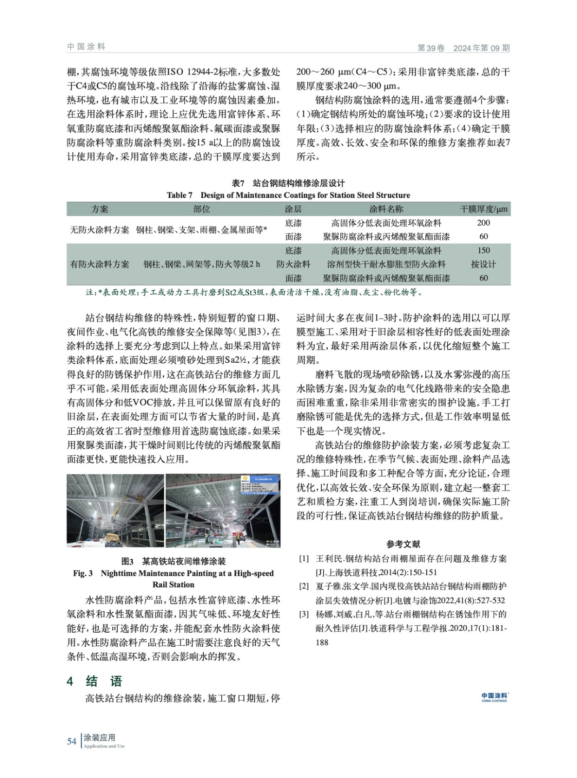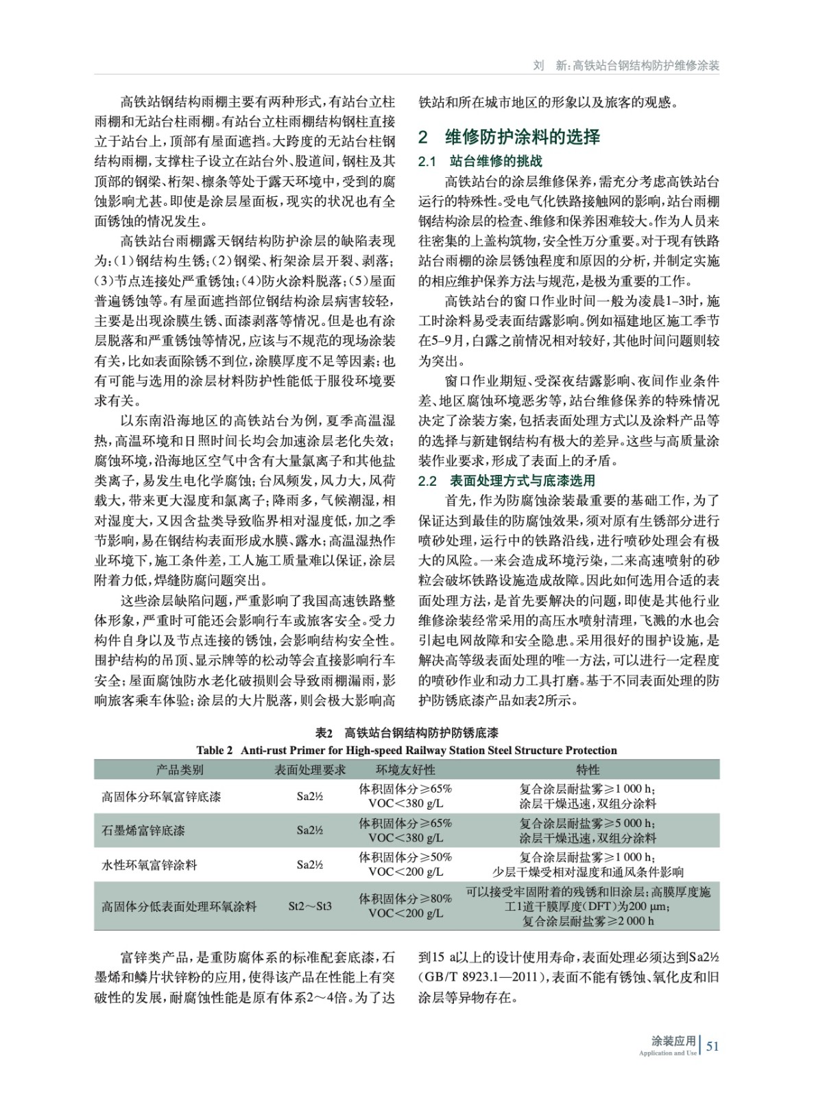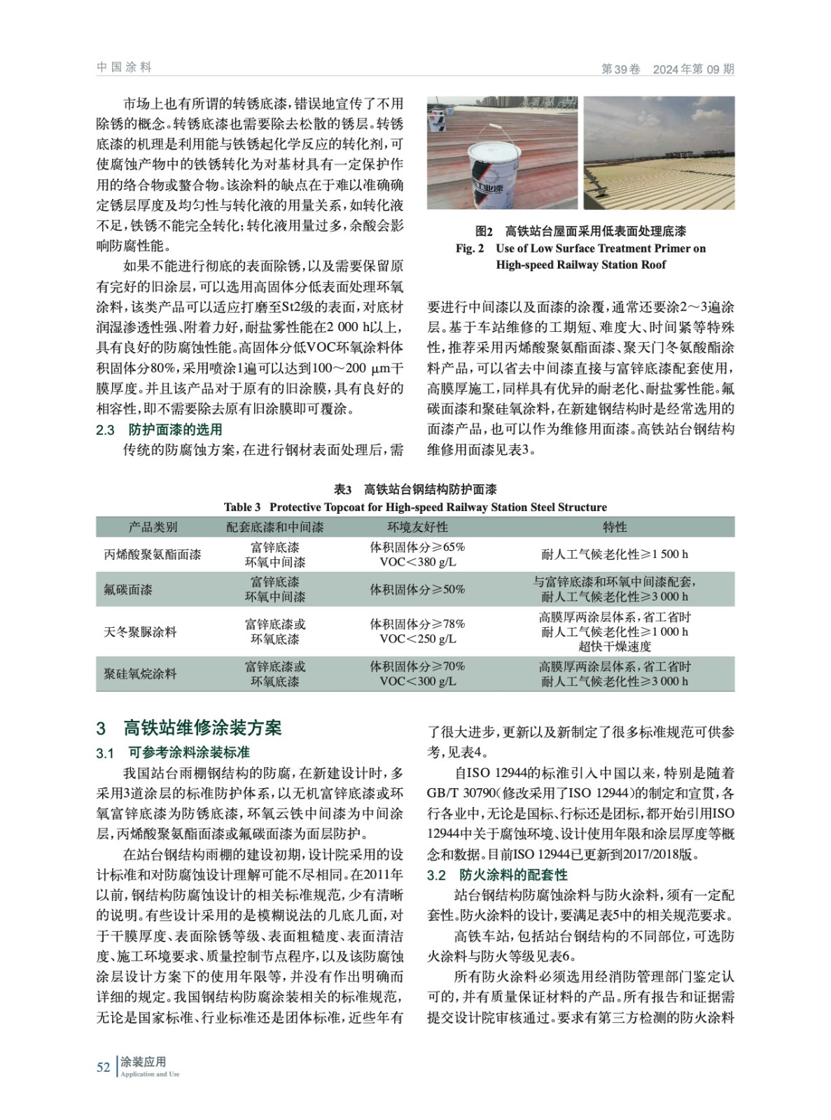 分析了高鐵站臺上以雨棚鋼結構為例的腐蝕狀況和涂層現狀,分析腐蝕與涂層缺陷的原因,介紹了不同的防銹底漆和耐紫外光老化的面漆涂料產品的性能特點,結合防火涂層,提出了高效環保的站臺鋼結構防護維修方案。