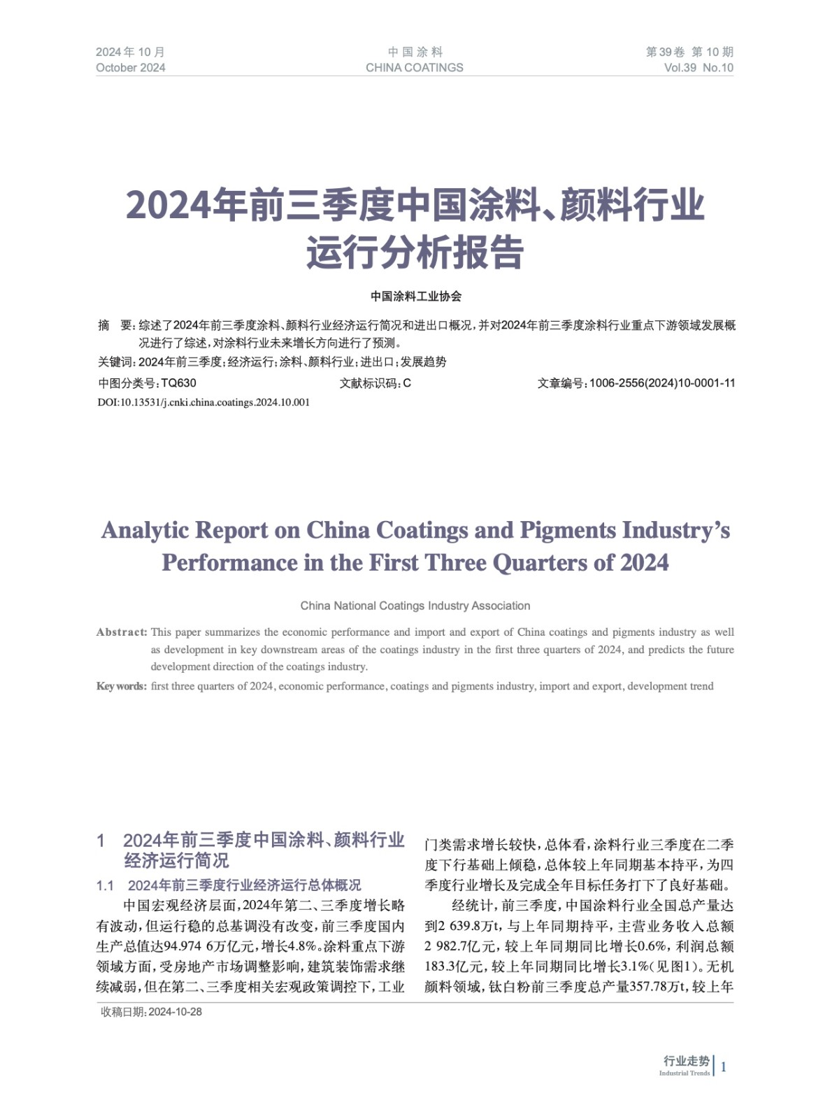 2024年前三季度中國(guó)涂料、顏料行業(yè)運(yùn)行分析報(bào)告