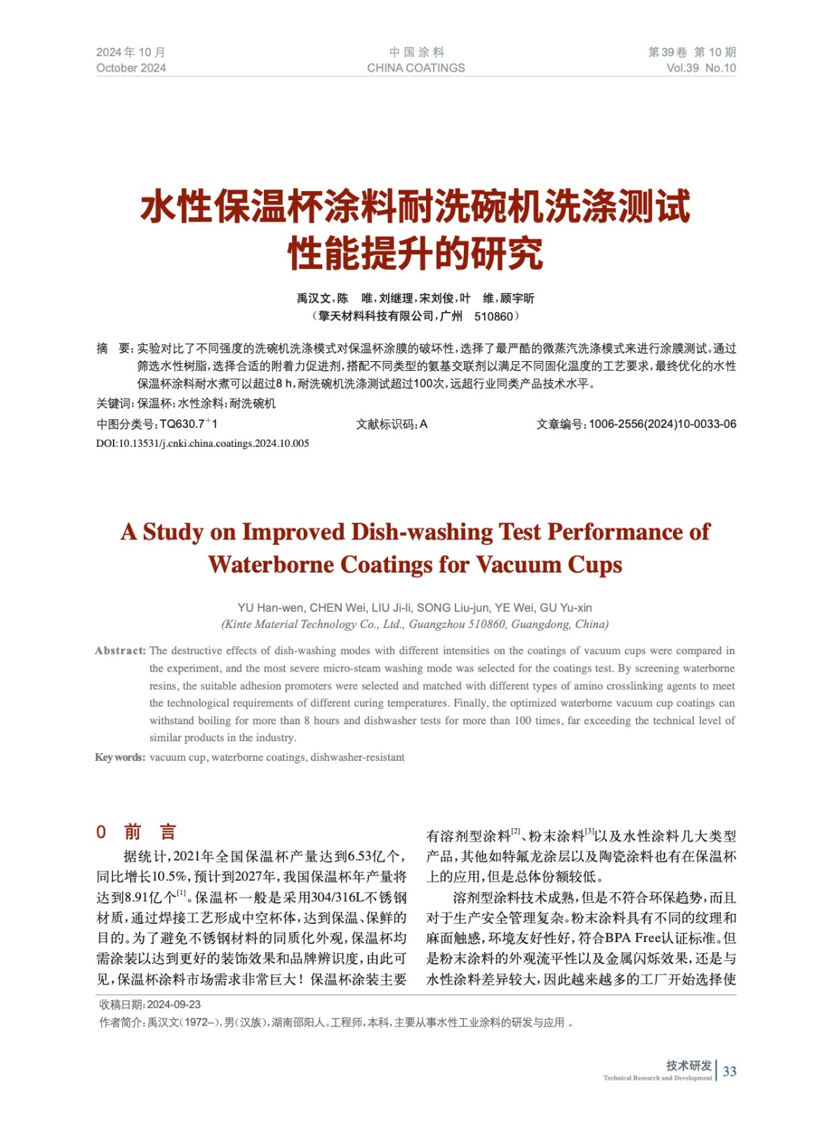 本文系作者@禹漢文,陳 唯,劉繼理,宋劉俊,葉 維,顧宇昕 授權中國涂料網發(fā)表,并經中國涂料網編輯,未經允許不得轉載,如需轉載請聯系chinacoatingnet@vip.163.com