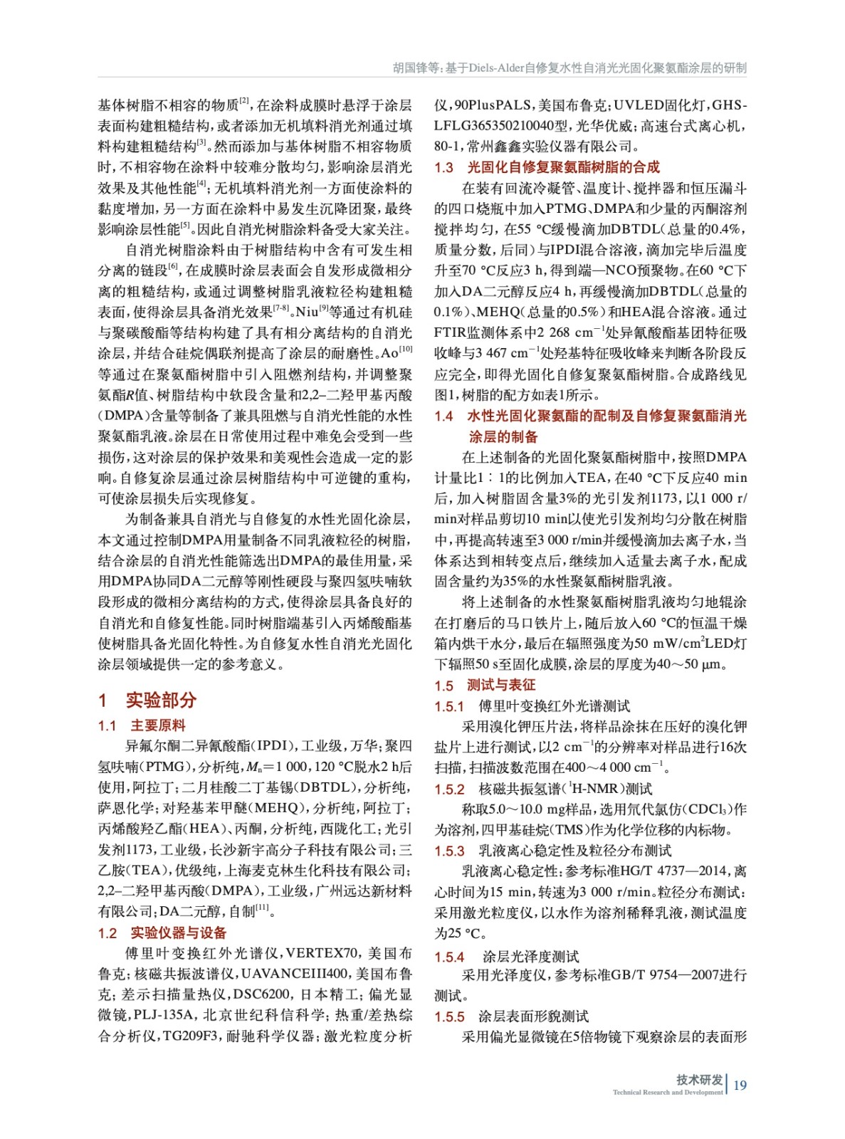 基于Diels-Alder自修復水性自消光光固化聚氨酯涂層的研制