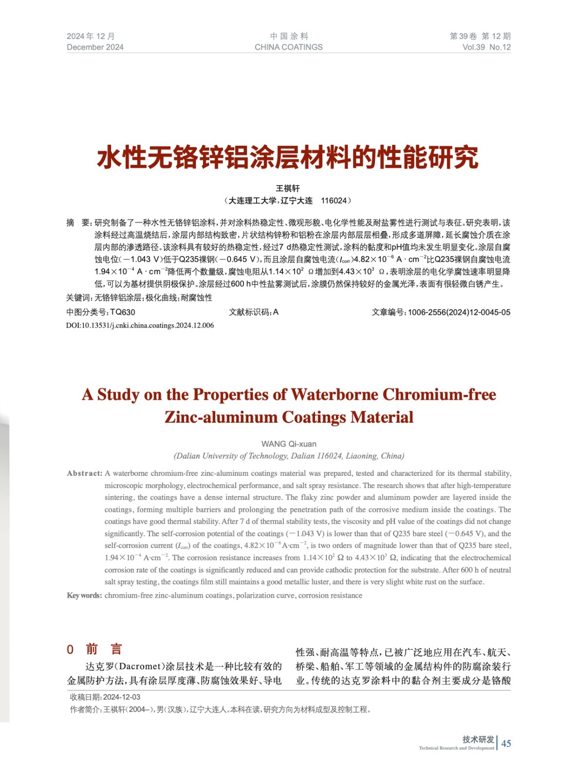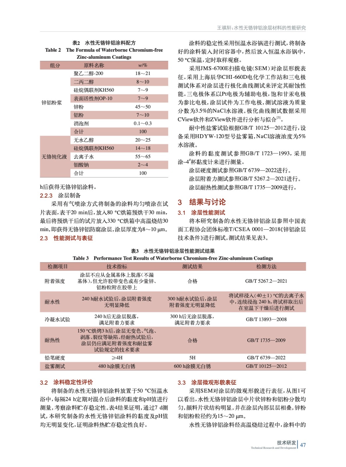 水性無鉻鋅鋁涂層材料的性能研究