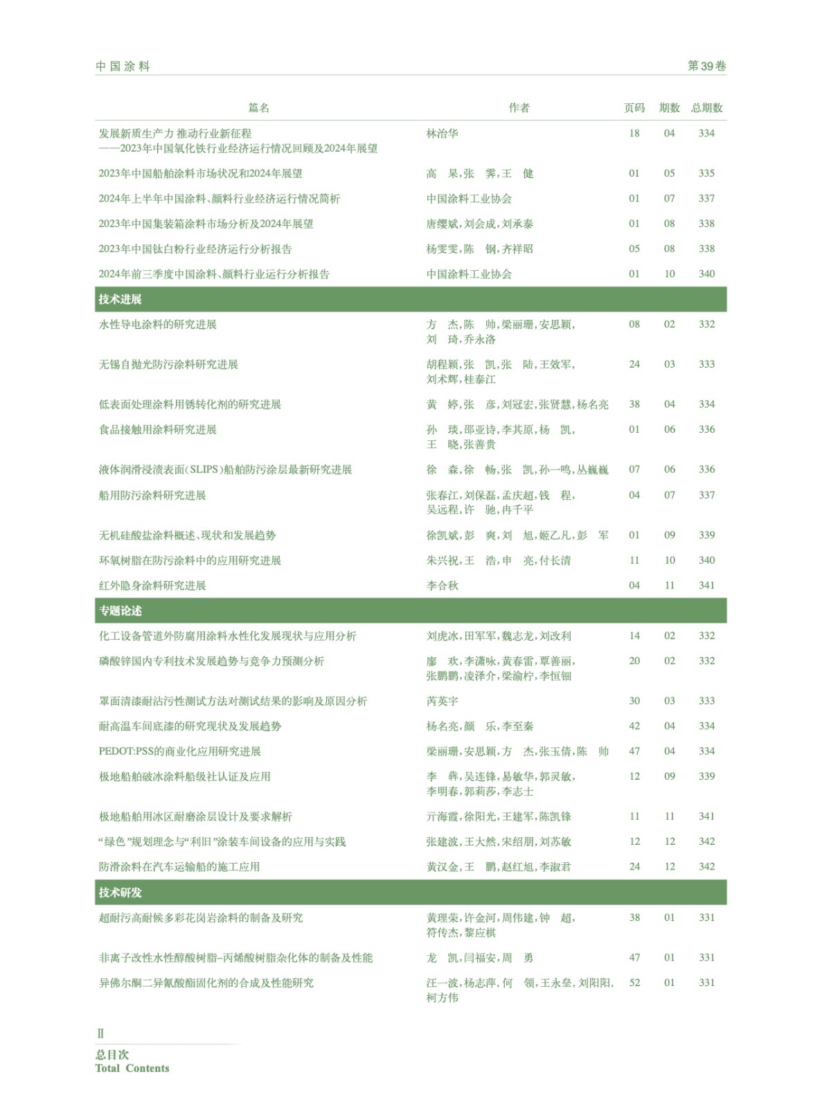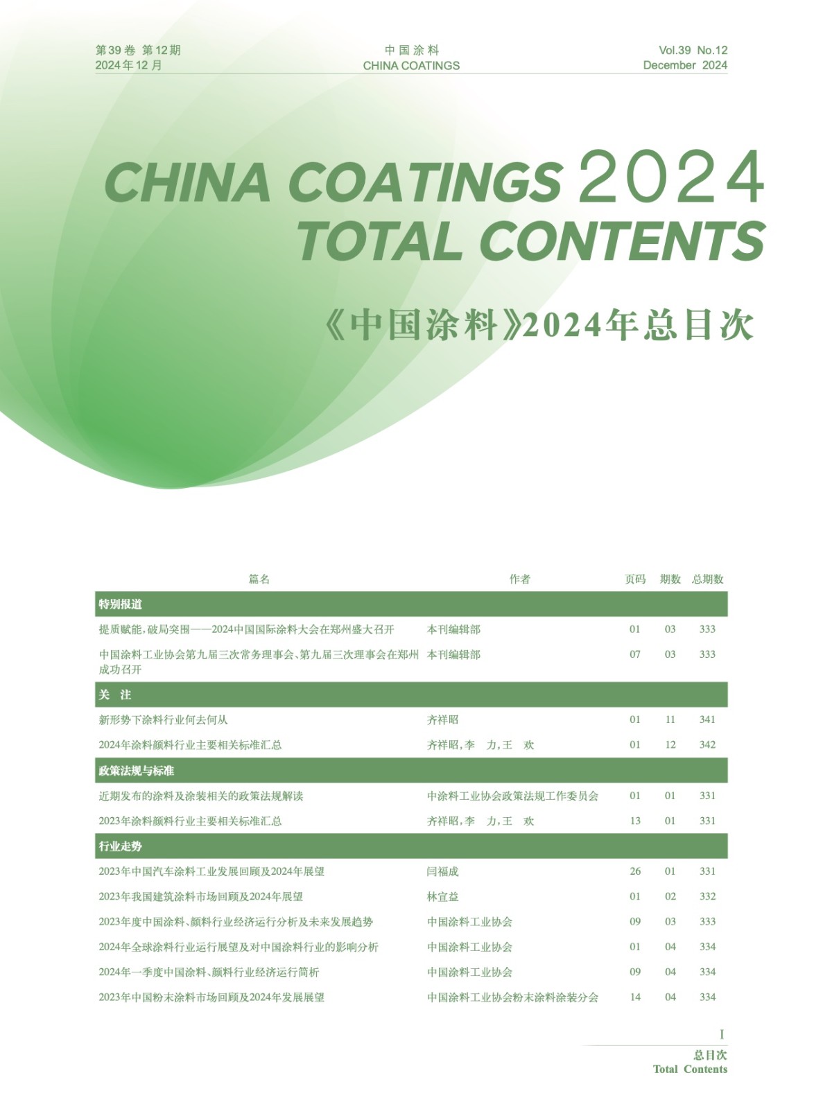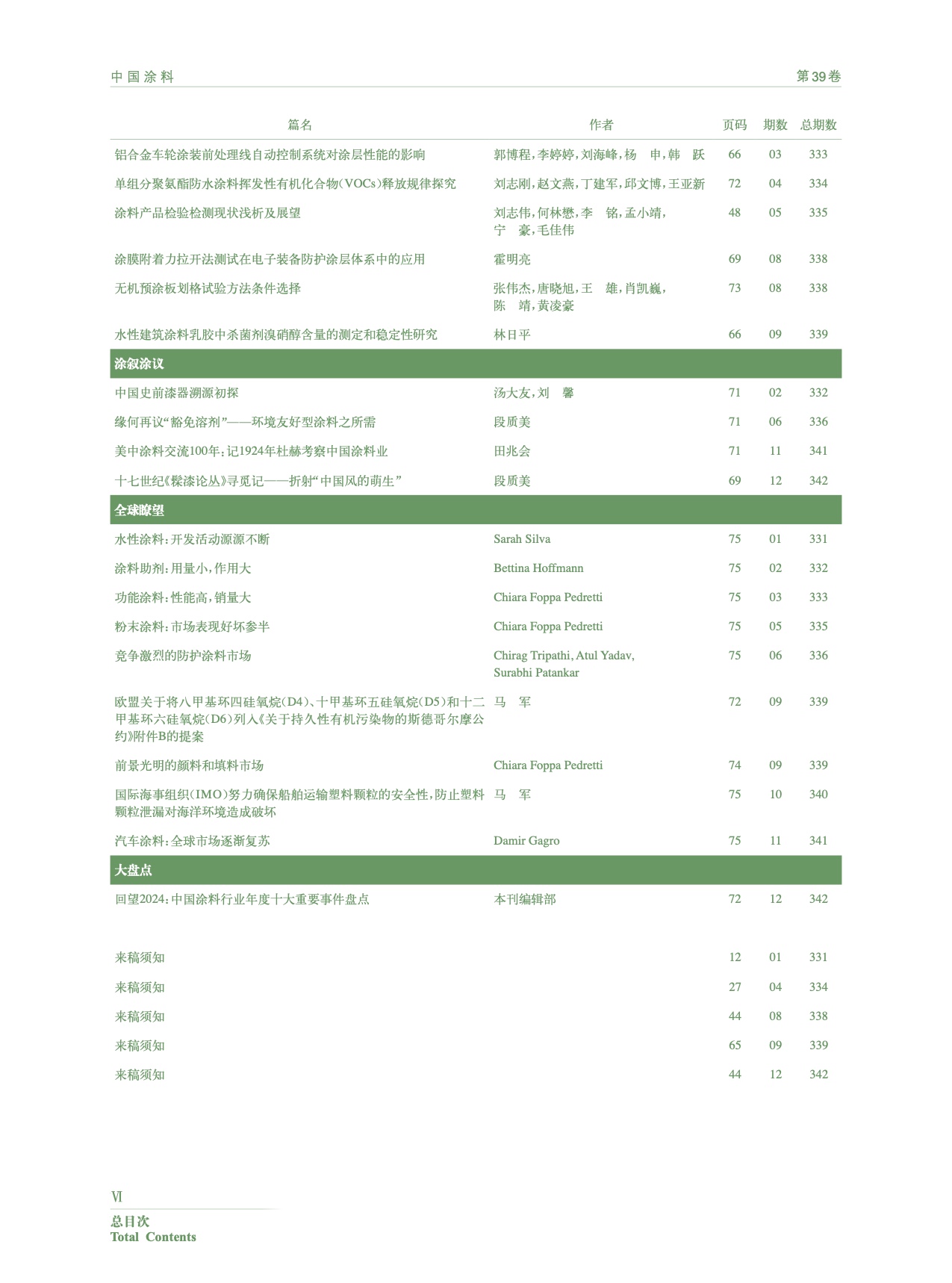 Ⅰ-Ⅵ《中國涂料》2024年總目次