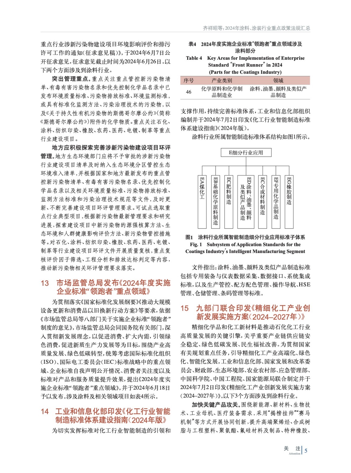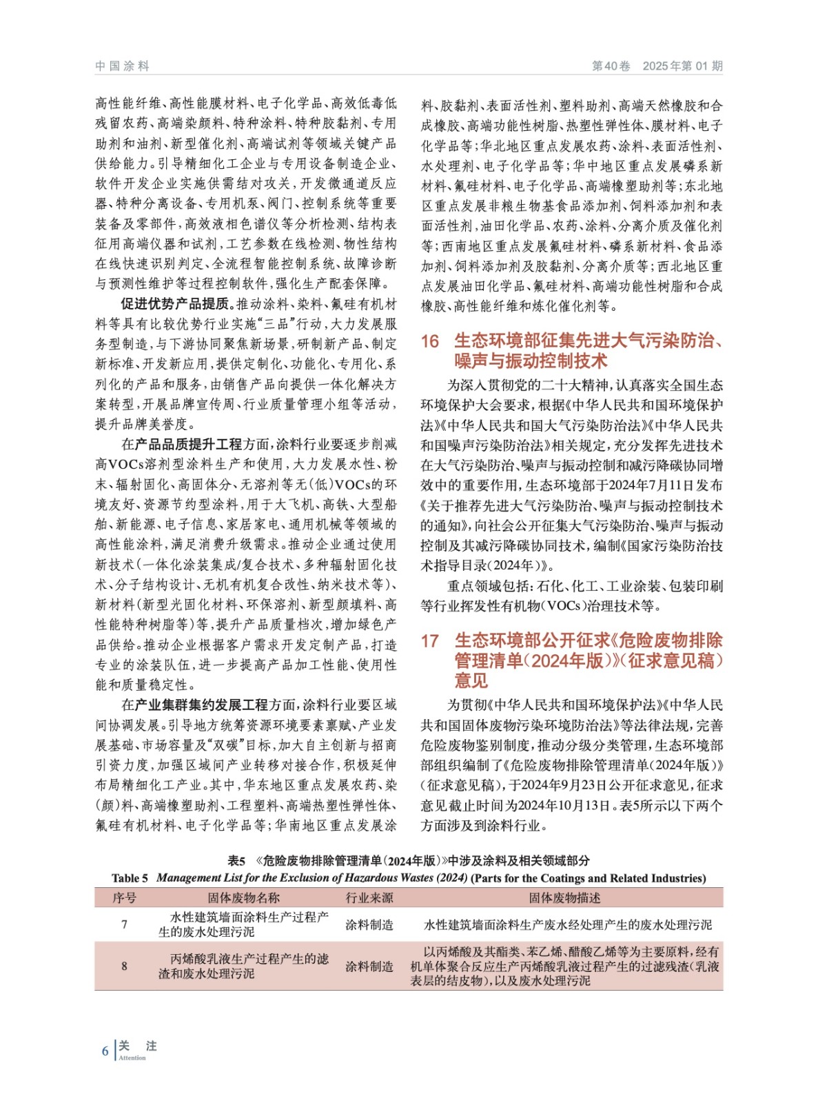 摘要:編者按:2024年,中國涂料行業及上下游產業鏈受到眾多不確定的各種因素影響,但持續轉型升級的腳步未曾停歇。2024年國家有關部門出臺了多項涉及涂料、涂裝領域的政策法規,《原材料工業數字化轉型工作方案(2024–2026年)》《2024–2025年節能降碳行動方案》《化工行業智能制造標準體系建設指南(2024年版)》《精細化工產業創新發展實施方案(2024–2027年)》《國家危險廢物名錄(2025年版)》等重點政策法規以及綠色建材下鄉活動等將對行業未來高質量發展起到重要作用。