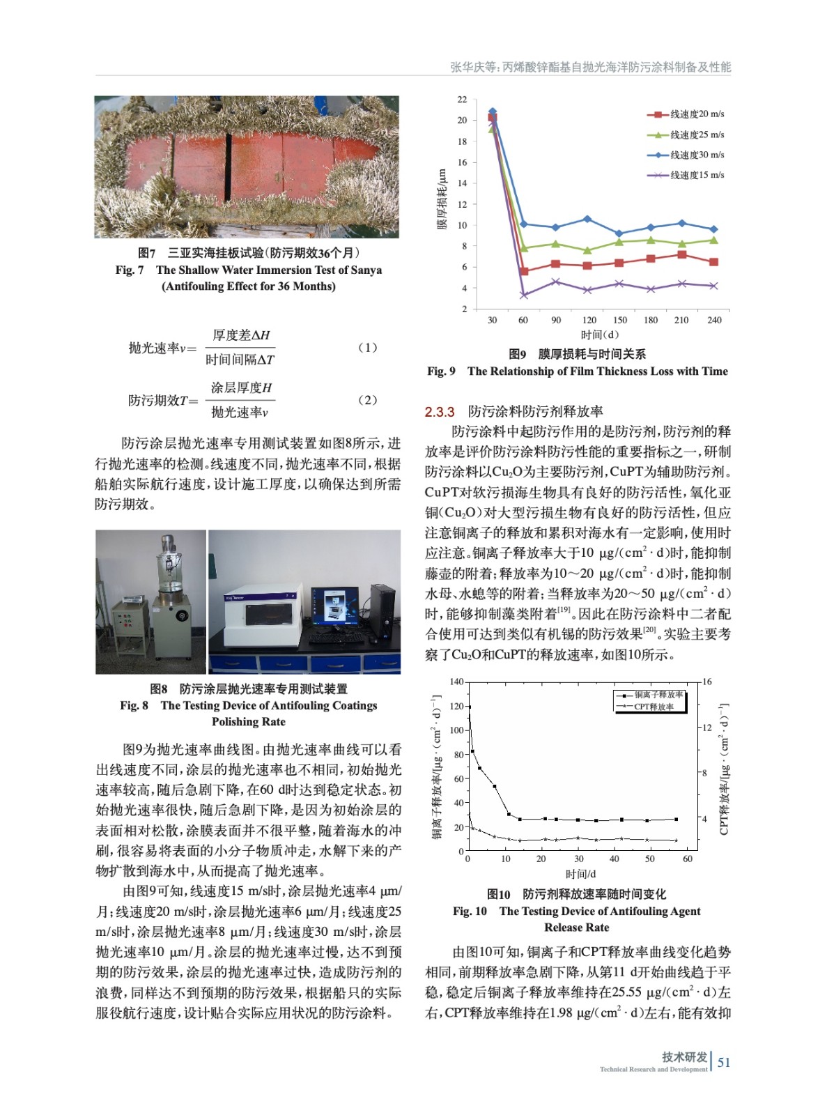丙烯酸鋅酯基自拋光海洋防污涂料制備及性能
