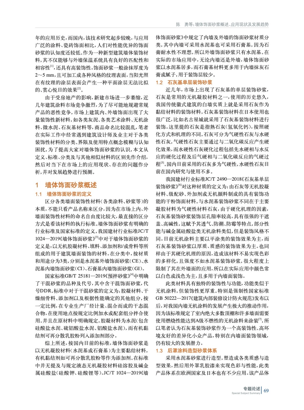 摘要:對墻體飾面砂漿的定義、執(zhí)行標準、品類與市場上相近品類的產(chǎn)品對比進行了概述,然后對應用現(xiàn)狀、應用場景及存在問題進行了簡述,最后對發(fā)展趨勢進行了預測。
