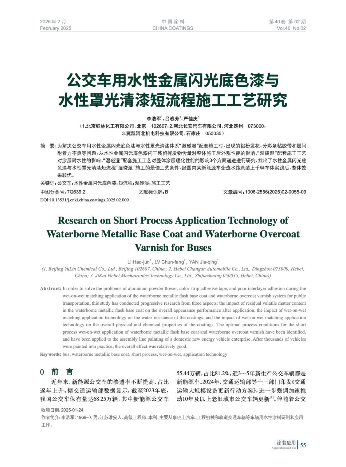 公交車用水性金屬閃光底色漆與水性罩光清漆短流程施工工藝研究