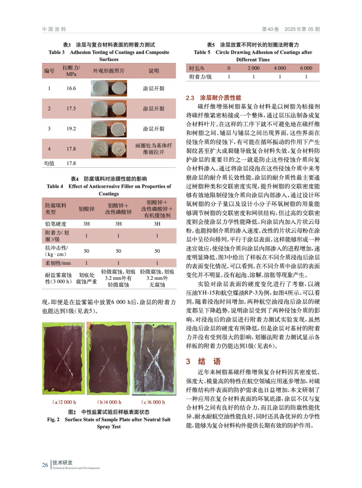 摘要:制備出一種用于碳纖維復(fù)合材料表面的環(huán)氧底漆,并對(duì)涂層與復(fù)合材料之間的結(jié)合力進(jìn)行了研究,分析了涂層的耐介質(zhì)、防腐蝕等性能,結(jié)果表明環(huán)氧底漆與復(fù)合材料之間具有良好的結(jié)合力,涂層具有優(yōu)良的綜合性能,對(duì)碳纖維復(fù)合材料有優(yōu)秀的防護(hù)作用。