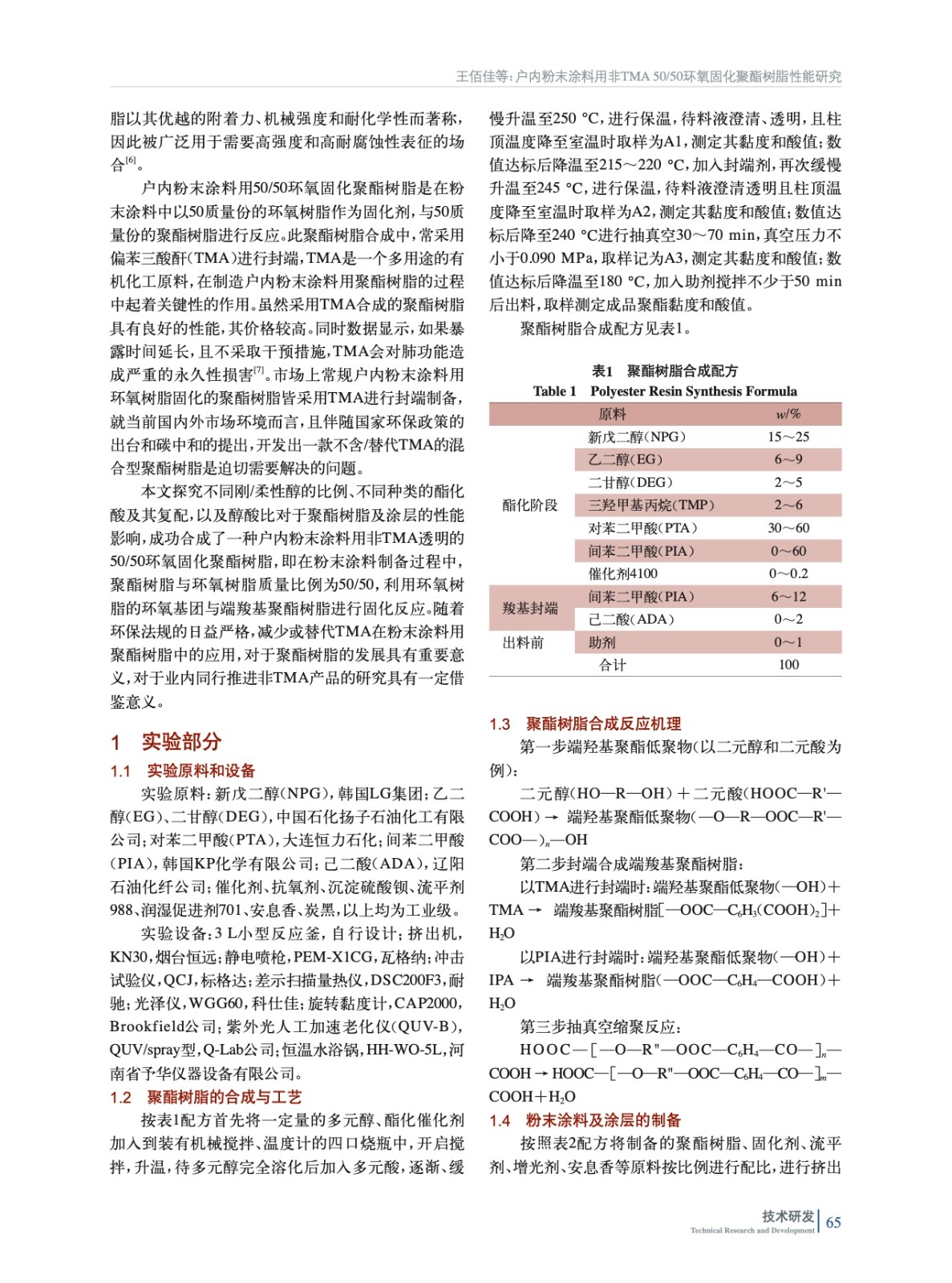 戶內(nèi)粉末涂料用非TMA 50/50環(huán)氧固化聚酯樹脂性能研究