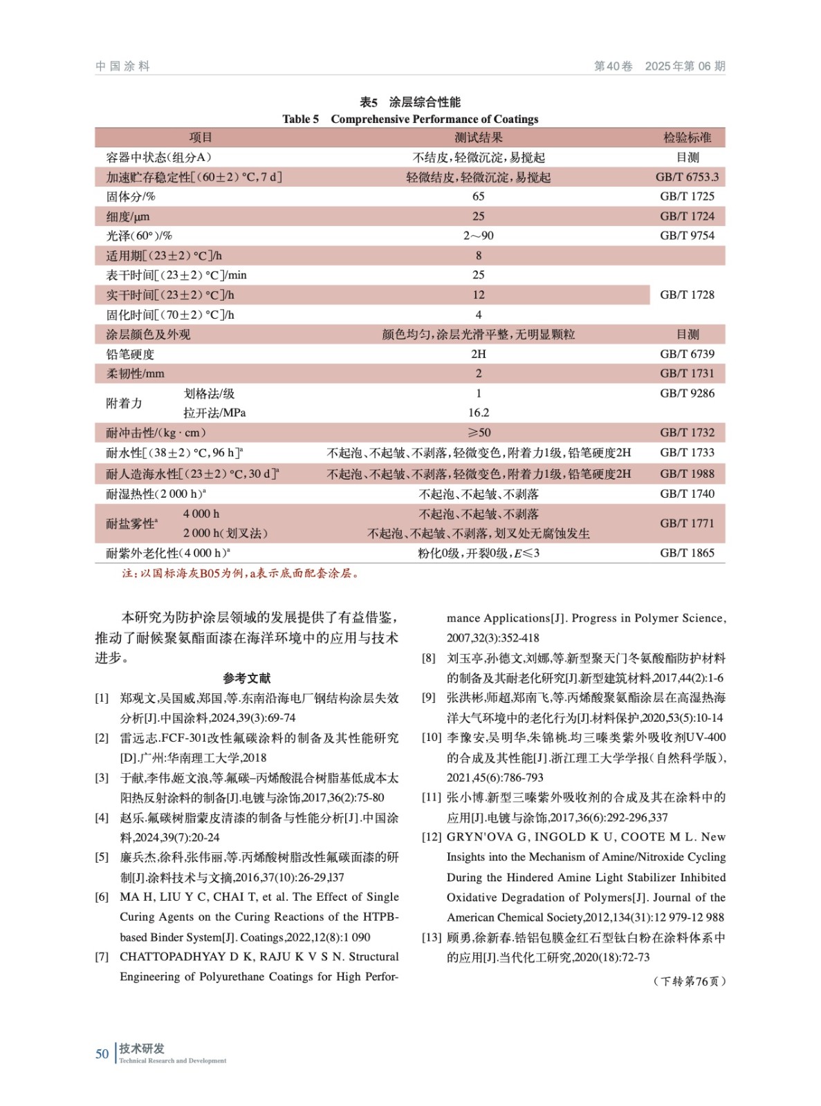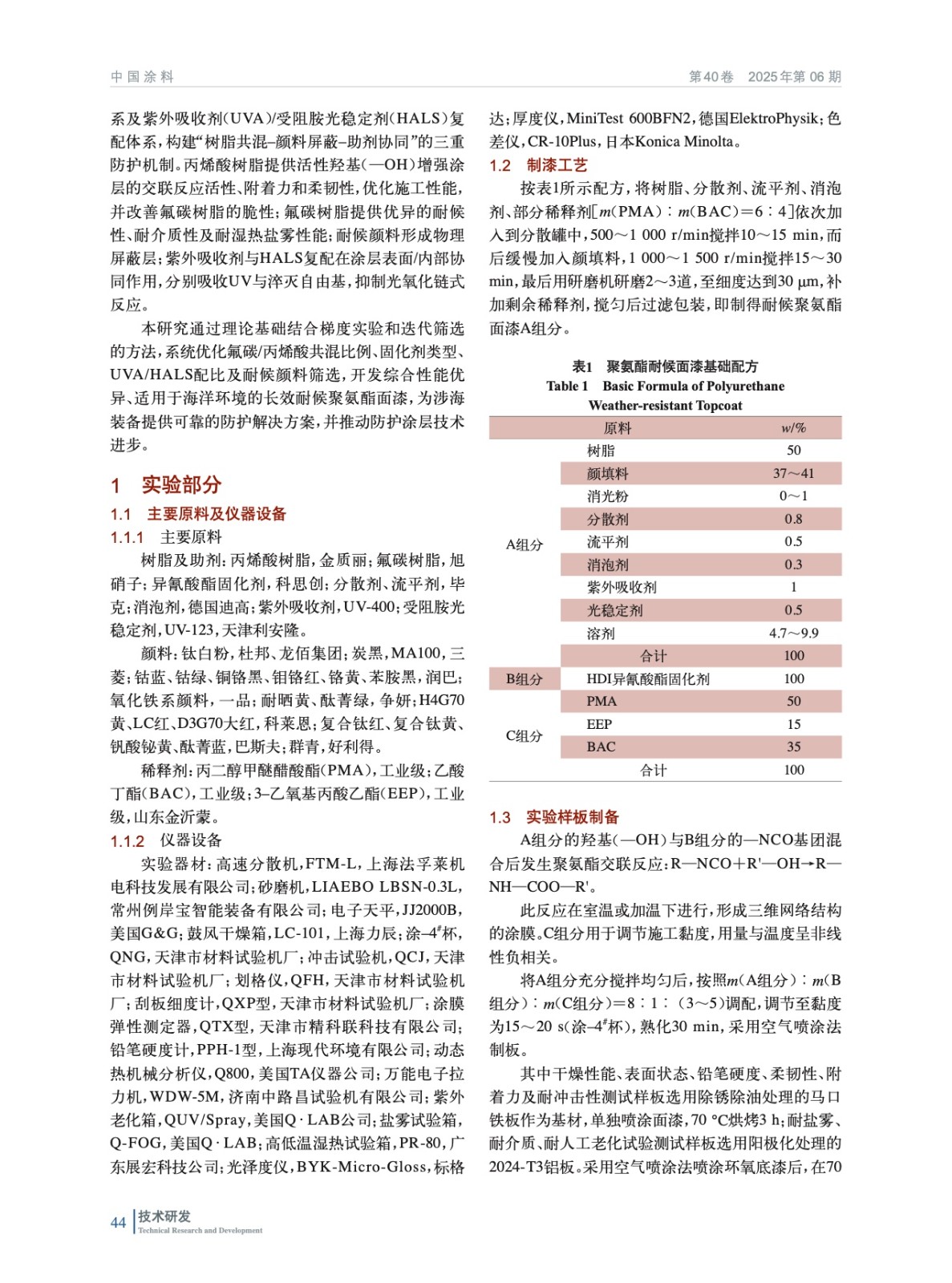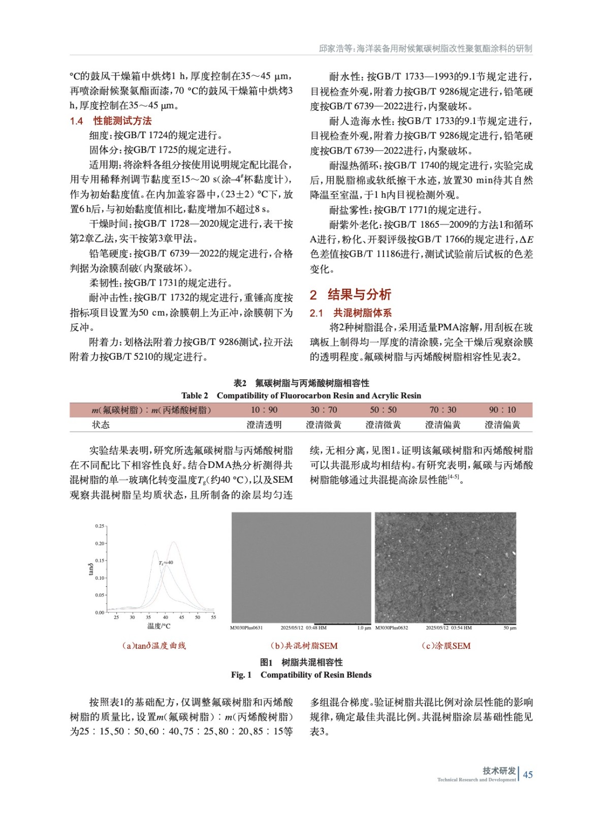 海洋裝備用耐候氟碳樹脂改性聚氨酯涂料的研制