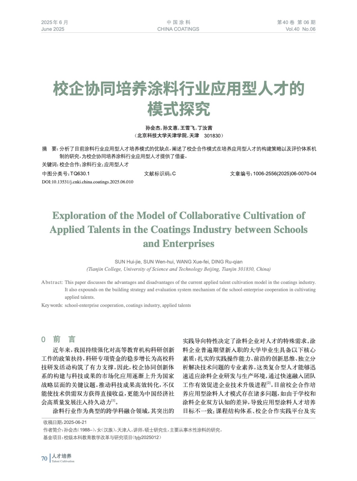 分析了目前涂料行業應用型人才培養模式的優缺點,闡述了校企合作模式在培養應用型人才的構建策略以及評價體系機制的研究,為校企協同培養涂料行業應用型人才提供了借鑒。