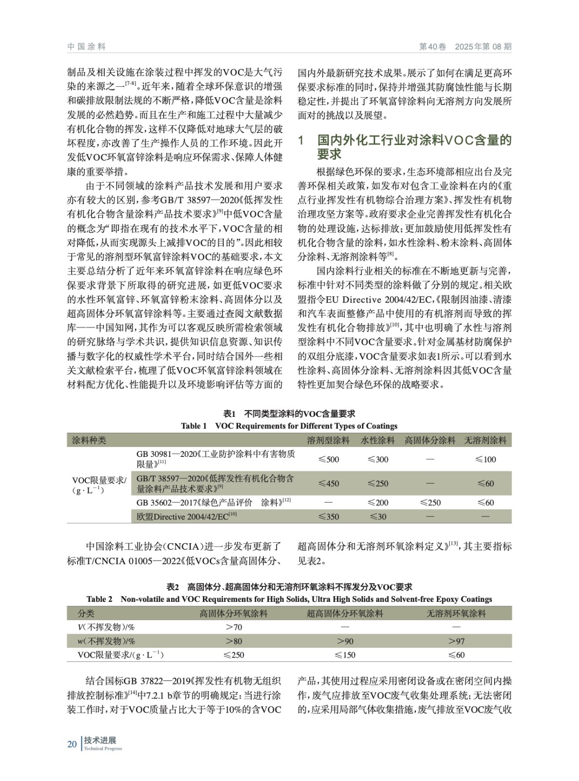 環保政策驅動下低VOC環氧富鋅涂料的研究進展與挑戰