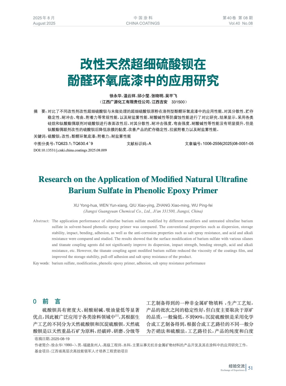 本文系作者@徐永華,溫云祥,邱小瑩,張曉明,吳平飛 授權中國涂料網發表,并經中國涂料網編輯,未經允許不得轉載,如需轉載請聯系chinacoatingnet@vip.163.com