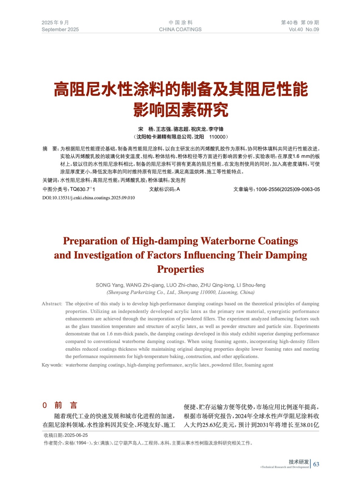 本文系作者@宋 楊,王志強,駱志超,祝慶龍,李守鋒 授權(quán)中國涂料網(wǎng)發(fā)表,并經(jīng)中國涂料網(wǎng)編輯,未經(jīng)允許不得轉(zhuǎn)載,如需轉(zhuǎn)載請聯(lián)系chinacoatingnet@vip.163.com