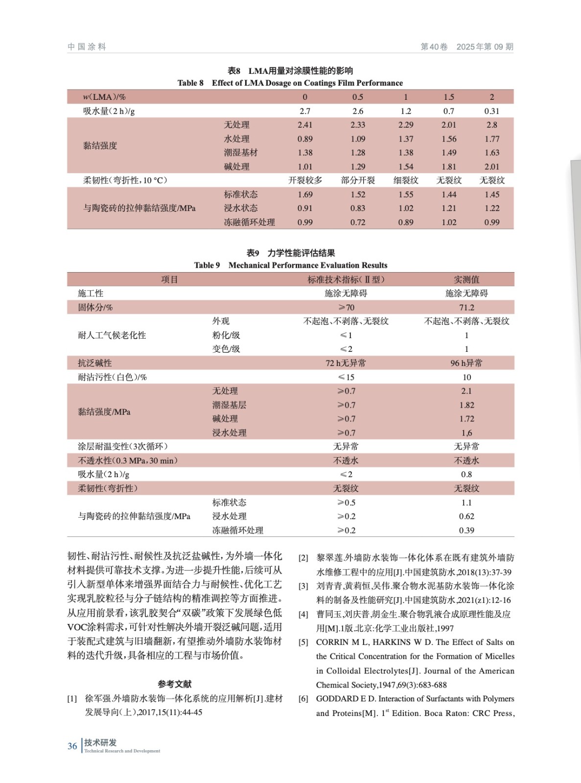水泥基外墻防水裝飾一體化涂料用丙烯酸乳膠的制備與應用研究