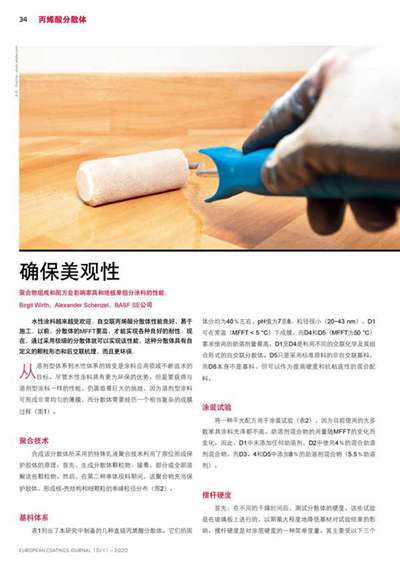聚合物組成和配方會影響家具和地板單組分涂料的性能