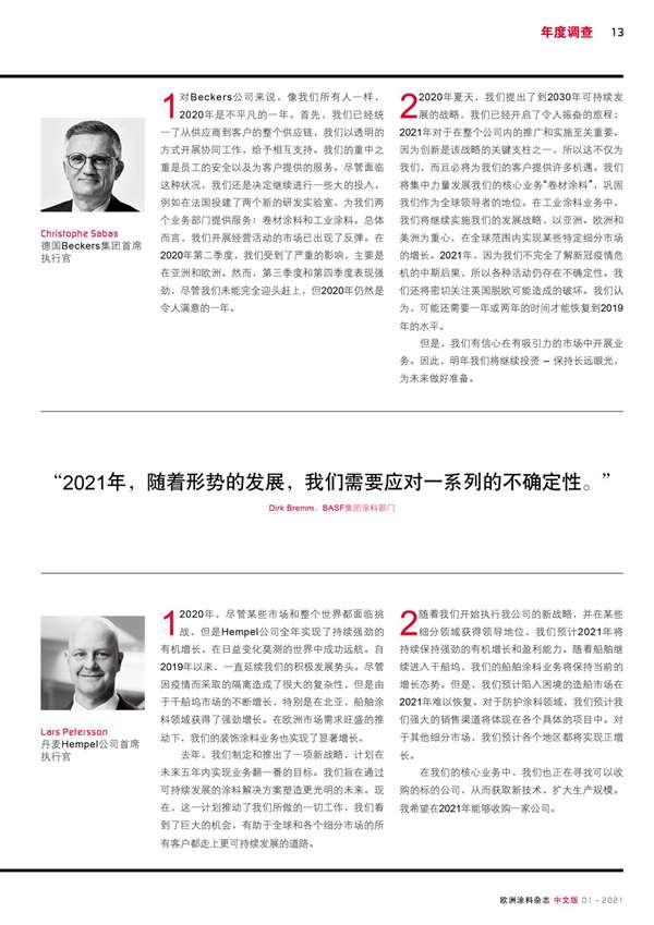 歐洲涂料生產(chǎn)商回顧了2020年的業(yè)績,并分享了他們對(duì)2021年的展望