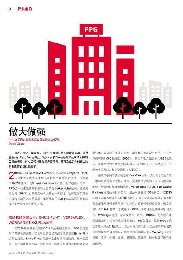 PPG公司通過收購多家公司加快做大做強