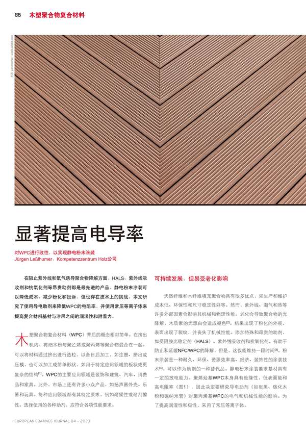 對(duì)WPC進(jìn)行改性,以實(shí)現(xiàn)靜電粉末涂裝