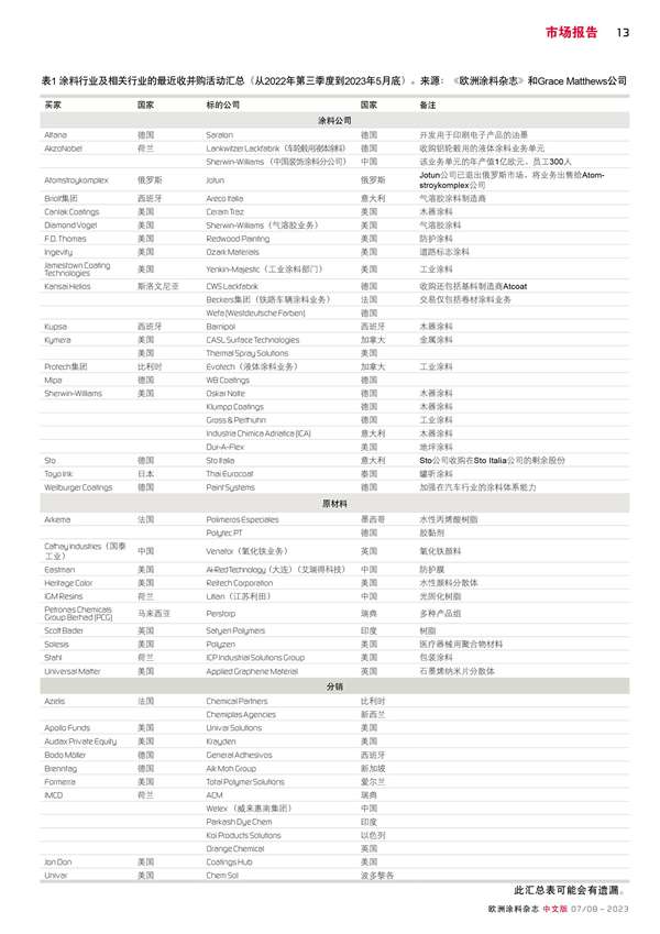 涂料行業收并購活動具有不確定性
