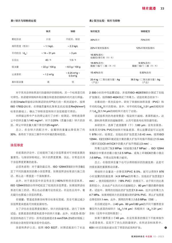 含鋅片的配方可以作為鋅粉的可持續發展替代品, 同時具有防電化學腐蝕性能