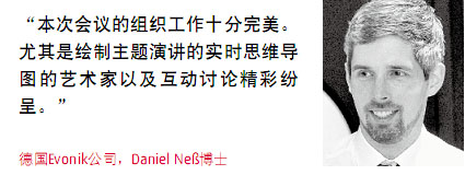 通常,各種技術(shù)會議都因循守舊,枯燥乏味。然而,歐洲涂料對話未來的會議上,涂料行業(yè)技術(shù)大咖發(fā)言幽默輕松,精彩紛呈,在茶歇期間分享技術(shù)論文,輕松進(jìn)行社交活動。同時,與會者也頗受這種未來氛圍的感染,甚至在麥克風(fēng)上也大做文章:將其埋置在一個較大的橡皮墊骰子中,可以在聽眾之間前后滾動。布置前衛(wèi)的會議室看起來像科幻電影,藝術(shù)家可在卡通化思維導(dǎo)圖中實(shí)時捕捉報(bào)告精髓,創(chuàng)造出前所未有的行業(yè)會議氛圍。