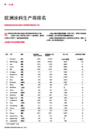 歐洲涂料雜志再次排出總部位于歐洲的前25家涂料生產商