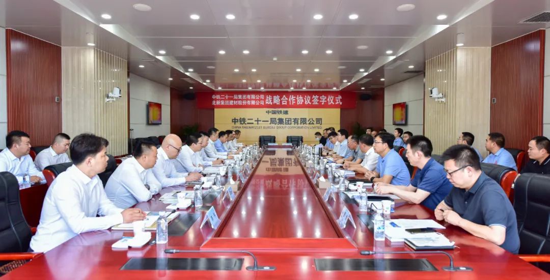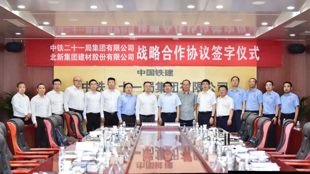 中鐵二十一局集團、西部鐵建工程材料科技有限公司和北新建材有關部門、單位負責同志參加簽約儀式和座談。中鐵二十一局集團有限公司隸屬國務院國資委下屬的中國鐵建股份有限公司,是集工程建設、科技研發、房地產開發、礦產資源開發及商貿經營等于一體的國有特大型建筑企業集團。擁有施工機械、檢測等設備4137余臺(套),年度施工能力400億元以上。先后完成了青藏鐵路等60多項國家鐵路干線工程建設、13000多條公里電氣化鐵路工程建設,都汶高速等40多條高等級公路建設。曾先后榮獲中國建筑工程魯班獎、詹天佑獎、廣廈獎、國家優質工程金(銀)獎、全國百項精品工程獎30多項;榮獲?。ú浚┘墐炠|工程獎60多項;榮獲國家、省部級科技進步獎30多項,其中國家科技進步特等獎1項;國家和省部級工法40多項、專利130多項,其中發明專利30多項,創中國建筑施工企業新紀錄6項。