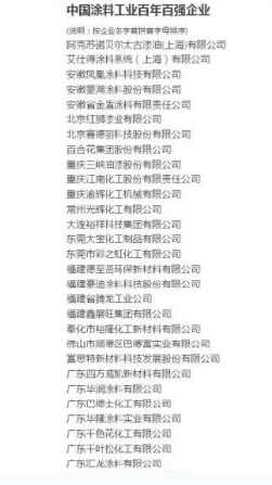 圖:中國(guó)涂料工業(yè)百年百?gòu)?qiáng)企業(yè)