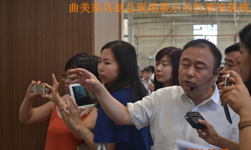 2014年6月27日,由北京市環保局主辦,曲美家具集團承辦的“清潔空氣 百項技改”新聞通報會在曲美家具集團順義西區工業園召開,引起了各界媒體的重點關注。曲美家具水性漆替代工程為北京重點環境保護技改項目正式全面啟動,展辰涂料集團股份有限公司作為曲美家具水性漆唯一供應商,應邀出席。