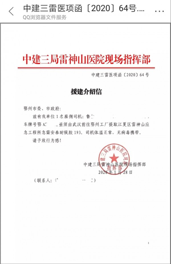 在獲悉武漢雷神山醫院開工后,集泰股份團隊積極配合總包方中建三局及施工方武漢思可達工作,1月28日接到雷神山項目部所需建筑密封膠產品型號和數量后,集泰股份武漢團隊反饋給高層,面對武漢新型肺炎疫情,集泰股份高層高度重視,心系疫區,當即決定為雷神山項目無償捐贈所需建筑密封膠材料。