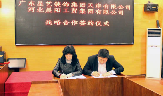 晨陽保廊分公司總經理劉文強與廣東星藝裝飾天津分公司總經理冷祖良簽署戰略合作協議