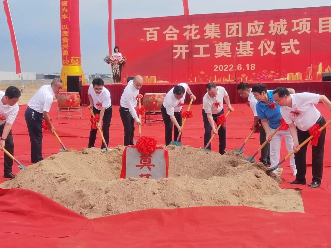 2022年6月18日,百合花集團應城澳賽斯項目開工奠基儀式在湖北省應城市圓滿舉行。百合花集團董事長陳立榮、副總裁王迪明、澳賽斯項目組、應城市市長胡光懷等四套班子成員、四里棚街道及市直有關單位主要負責人出席了奠基儀式。