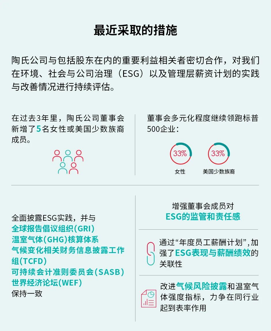 陶氏公司發(fā)布第二份環(huán)境、社會和公司治理(ESG)年度綜合報告,進(jìn)一步突顯其對數(shù)據(jù)披露透明度的承諾、以及公司如何為應(yīng)對全球挑戰(zhàn)提供解決方案、為所有利益相關(guān)者創(chuàng)造長期價值而付諸的努力。