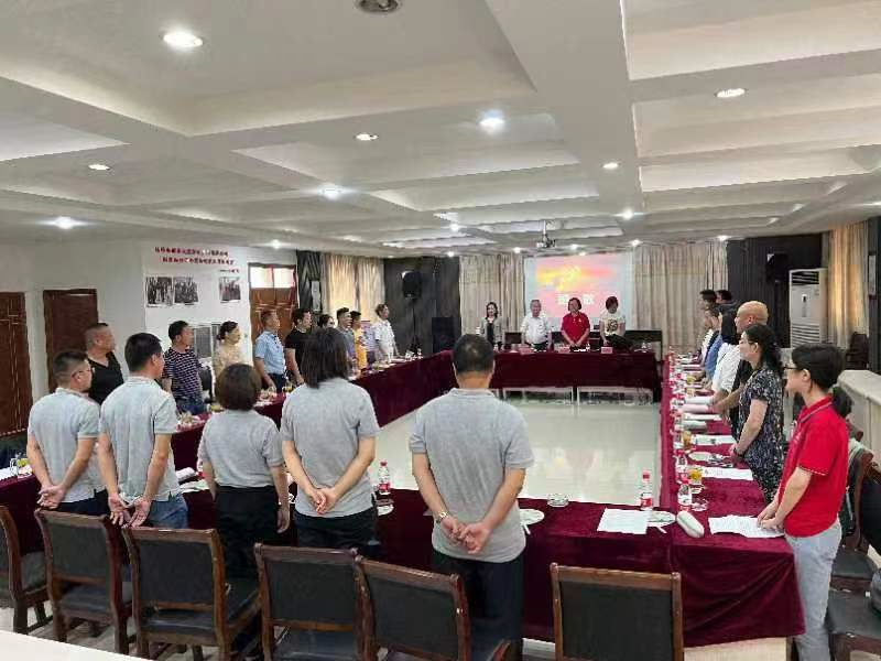 首先,在會議室召開了黨日活動交流座談會,會議在莊嚴的國歌中開始。