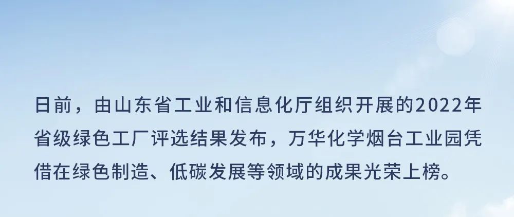 綠色工廠|萬華化學(xué)煙臺工業(yè)園獲評2022山東省綠色工廠