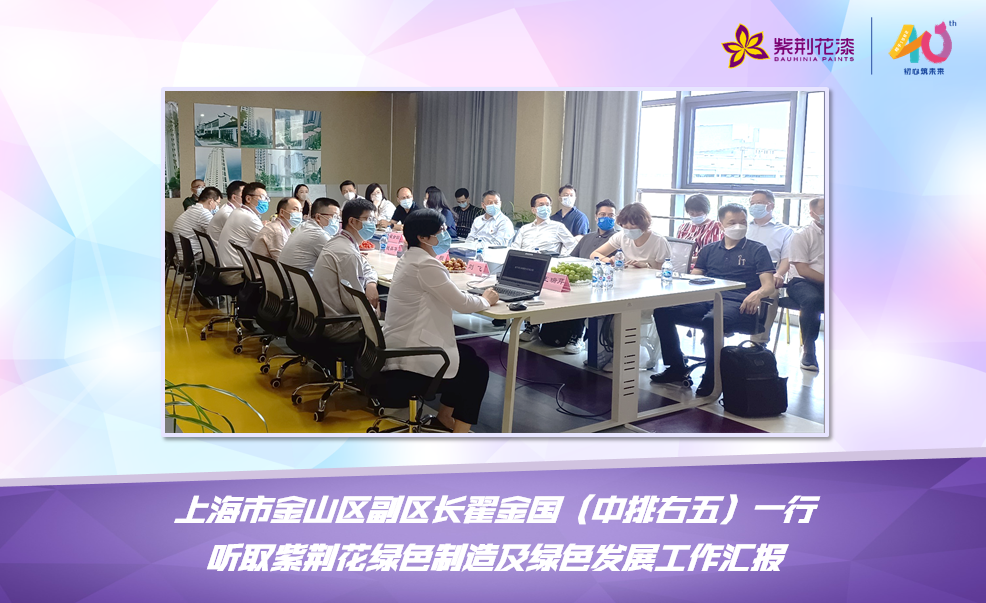 7月31日上午,上海市金山區(qū)副區(qū)長翟金國、上海市經(jīng)信委節(jié)能和綜合利用處處長黃捷一行蒞臨紫荊花上海金山大型自動化生產(chǎn)基地調(diào)研指導(dǎo)工作,紫荊花新材料集團(tuán)、金山生產(chǎn)基地相關(guān)領(lǐng)導(dǎo)及職能部門負(fù)責(zé)人陪同。