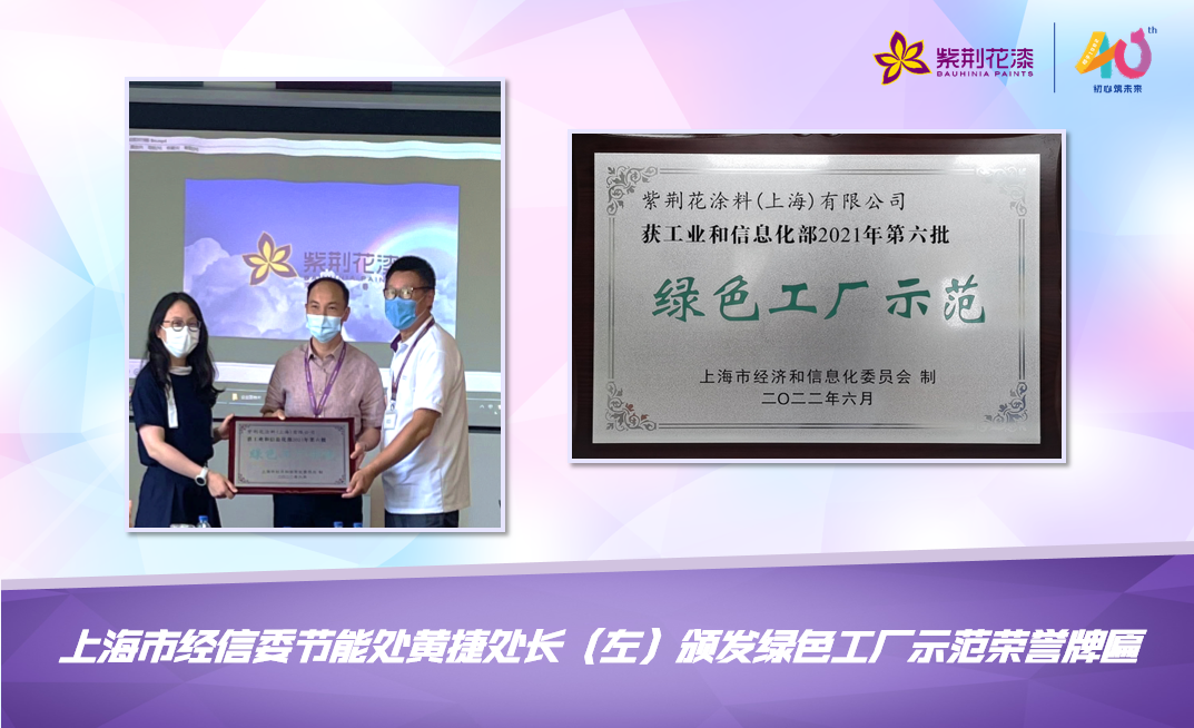 早前,國家工業(yè)和信息化部發(fā)布2021年度“綠色工廠示范”名單,紫荊花涂料(上海)有限公司榜上有名,旗下多款產(chǎn)品同時入選綠色設(shè)計產(chǎn)品名單。