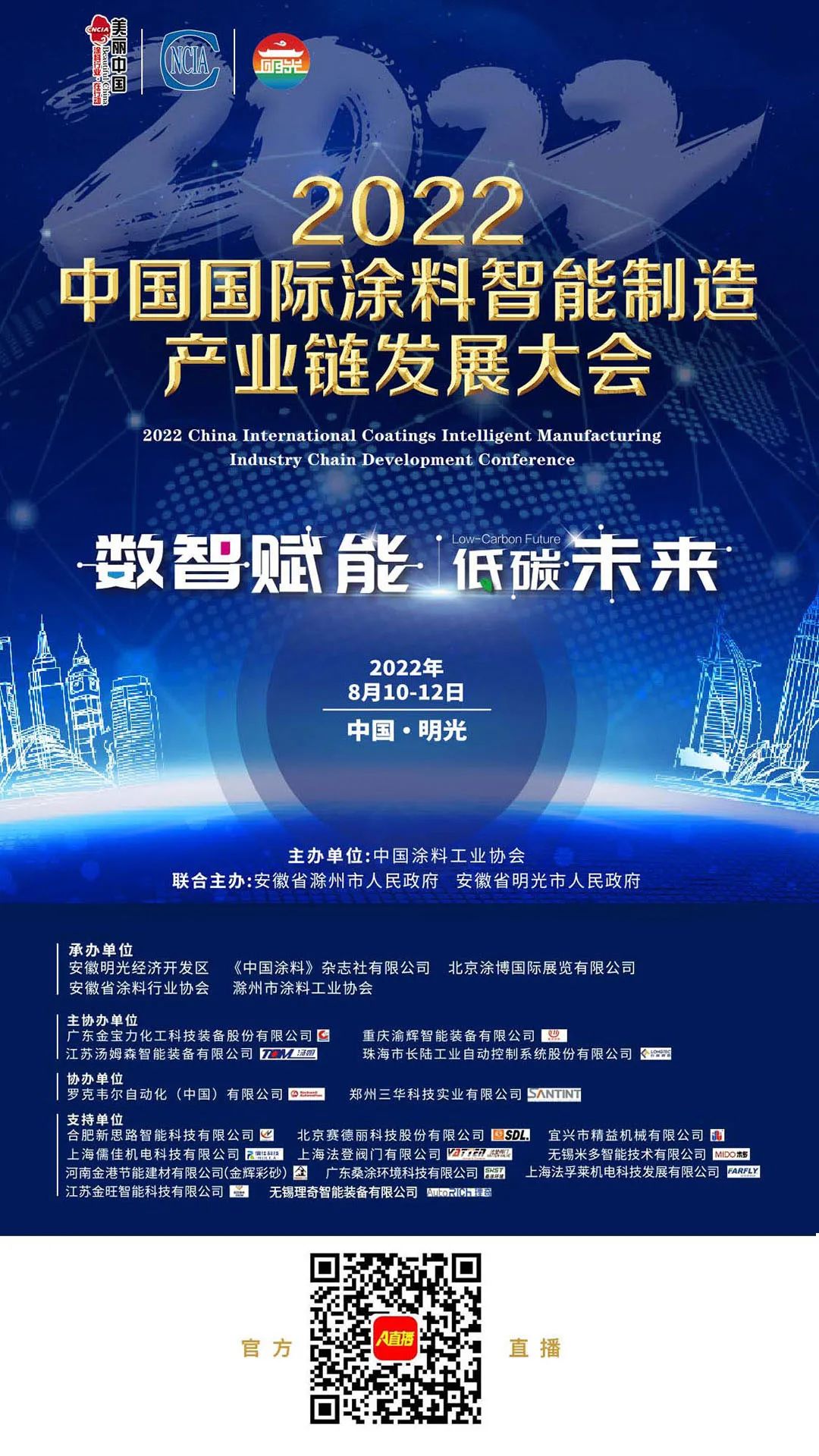 2022年8月10-12日, 中國涂料工業協會與安徽省滁州市人民政府、明光市人民政府聯合主辦的“2022中國國際涂料智能制造產業鏈發展大會” 在安徽明光盛大召開。會議重點圍繞“數智賦能,低碳未來”,邀請來自涂料全產業鏈生產企業、智能裝備與系統制造企業,以及國內外智能裝備研究院所的專家學者,共同探討涂料行業綠色智能制造全產業鏈協同發展和有效對接,分享涂料行業如何加快數字化改造,實現全行業的綠色智能轉型升級,并同時為進一步打造明光綠色涂料產業園搭建高效的平臺。