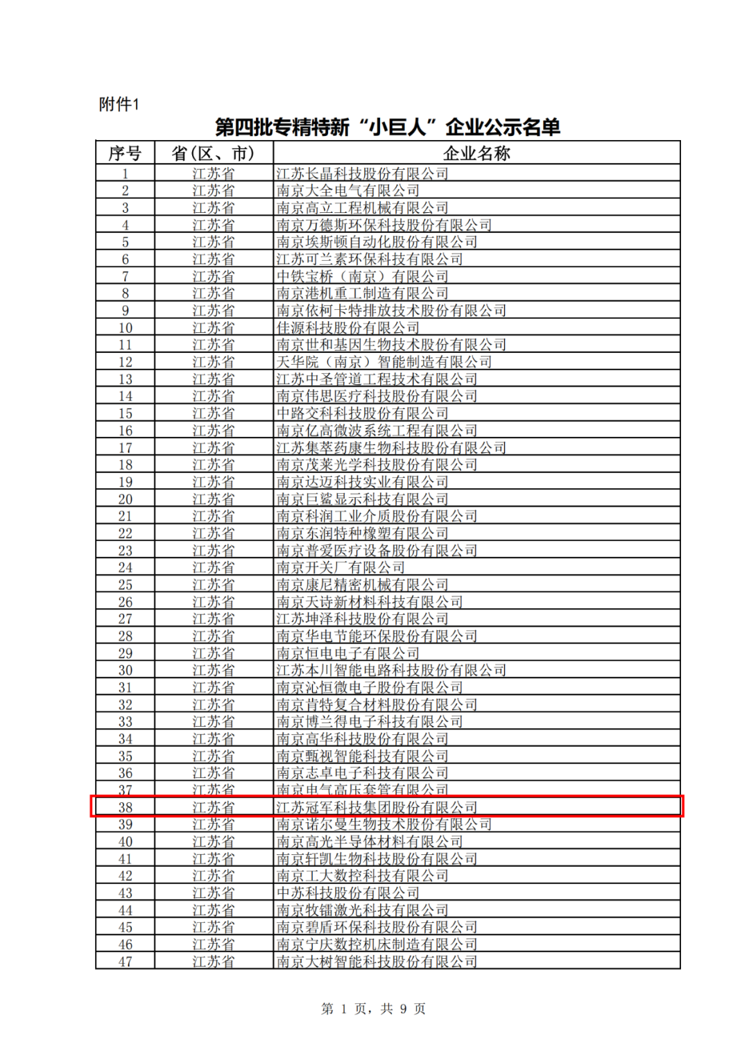 8月9日,根據(jù)國家工信部統(tǒng)一部署,江蘇省工信廳發(fā)布了《關(guān)于江蘇省第四批專精特新“小巨人”企業(yè)和第一批專精特新“小巨人”復(fù)核通過企業(yè)名單的公示》,全省共425家企業(yè)進(jìn)入第四批專精特新“小巨人”名單,其中南京市入圍62家,江蘇冠軍集團(tuán)成功入選,這是繼去年集團(tuán)獲評(píng)省級(jí)專精特新小巨人企業(yè)之后,一年內(nèi)再創(chuàng)新高,獲得的又一重量級(jí)榮譽(yù)。