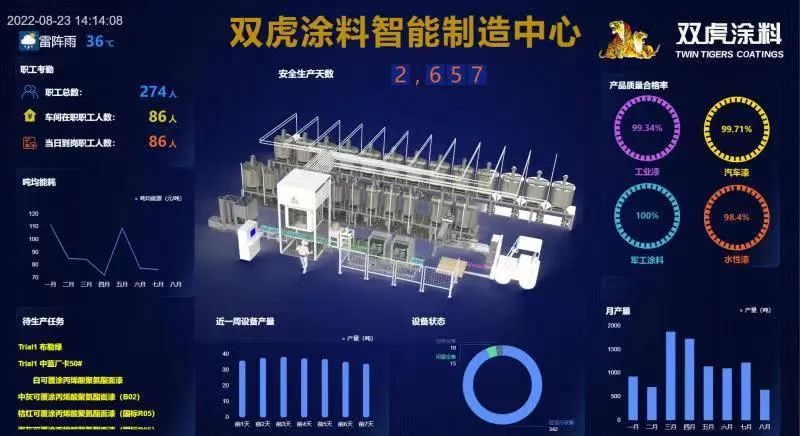 本系統不僅很好地助力了公司經營質量提升,同時在湖北省涂料行業也是一個樣板工程,雙虎涂料將以此為樣板,持續復制本生產線來升級其他生產車間,全面提升雙虎涂料的智能化制造水平,持續助力企業的高質量發展。