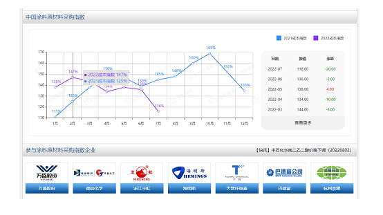 指數自2022年初進行內測,已經成功為各參與單位提供準確的數字支持,下一步工作還將在細分指數、參與指數企業納新和為納入指數企業提供更多服務等方面展開。數據的收集和算法支持,由買化塑承擔,并成功通過了中國涂料工業協會和工信部的驗收。
